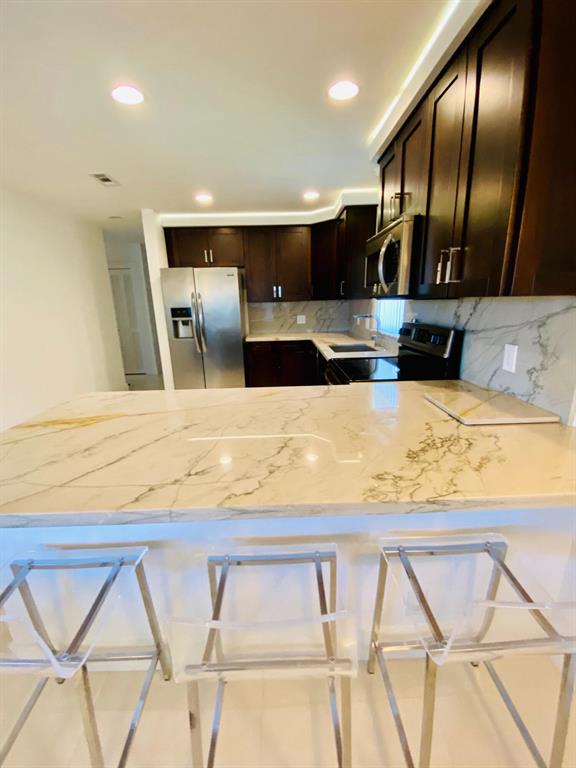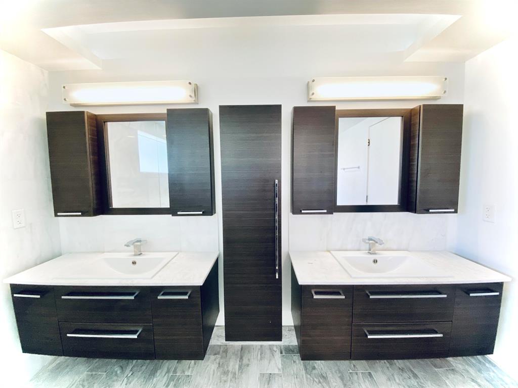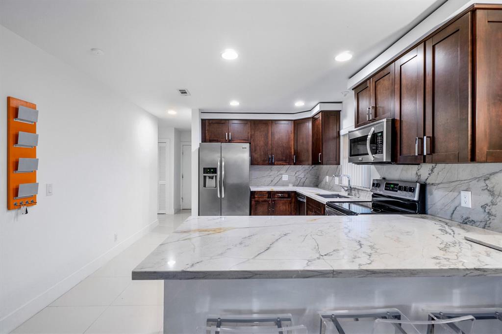 Rare central Boca remodeled 3/2 pool home on a corner lot with extra yard space and oak trees, in an A-rated school zone. Full kitchen remodel (natural quartz tops and backsplash, undermount stainless sink, stainless appliances, shaker cabinets, cove light above cabinets); 24'' rectified porcelain tile, mud set, credit card thin grout lines throughout all living spaces; skim-coated ceilings/walls; recessed lighting; extremely spacious bedrooms; spa-like master bath with marble rainfall shower, open glass enclosure, linear drain, wall mounted vanities with marble counter/marble backsplash; second bath complete with marble tile in shower/tub, modern hardware, wood look dark porcelain floor; A/C ductwork redone early 2014, A/C replaced 2013; built-out kids closets; woodwork in child's