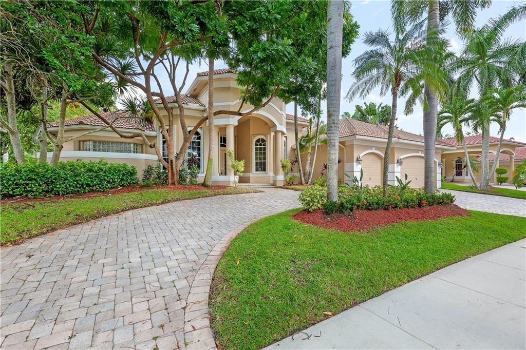 Spectacular golf course estate in gated Weston Hills Country Club (no membership required) with breathtaking endless double fairway views and complete privacy. Featuring 3 car garage, saturna marble and crown moldings throughout, soaring ceilings, circular drive w/pavers, heated pool and spa, master suite with two baths and two walk in closets, sitting room in master, cabana bath, 4 bedrooms with en suite bath.