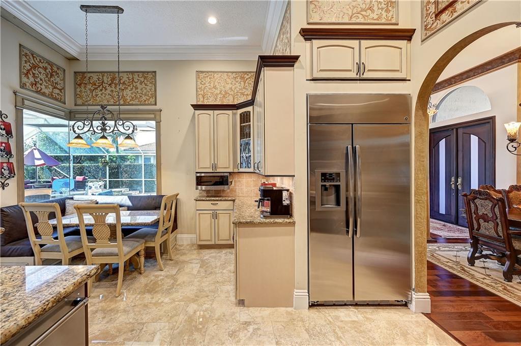 Welcome home to this incredible 5/3 (5th bedroom is custom office) home in highly sought after Chelsea at Kensington Glen. No detail has been spared in this home, it features: Custom Kitchen w/ Hand Painted Murals, & Built in Wine Rack, Granite countertops, & top of the line SS appliances, built in banquette table w/ matching Granite top, custom built Built in Bar, Real Exotic Hardwood Flooring, Coffered Ceilings, Custom Crown Moulding, Built in Stereo, and Surround Sound, Plantation Shutters throughout home. Kitchen overlooks beautiful Screened in Salt Water Heated Pool w/ Waterfall & Summer Kitchen. 3 car garage w/ Epoxy Flooring, has been partially converted into Workshop. Home also includes, Custom Doors, His & Hers Walk-In Closets, Accordion Hurricane Shutters & two built in safes.