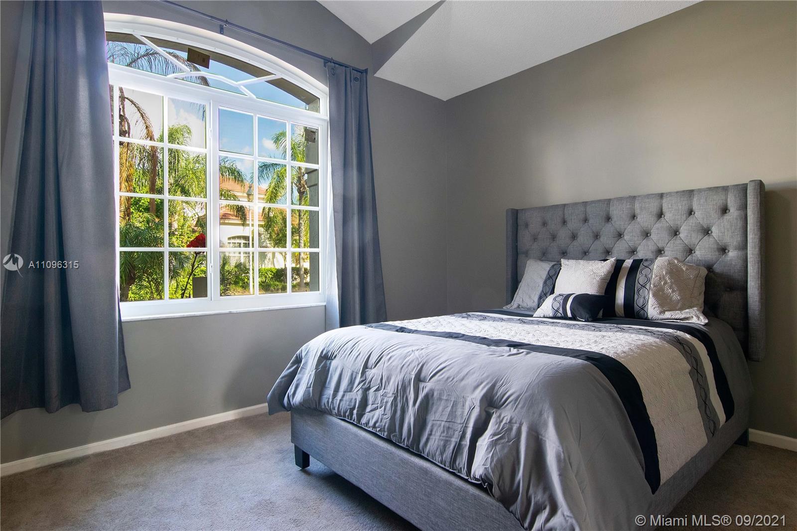 Superb 4 Bedroom plusloft, 3 Bath, 2 car garage, pool & lake home in manned-gated Grand Palms Golf Resort Community. Remodeled kitchen w/granite counter tops, wood cabinetry, newer black stainless steel appliances, pantry, eat-in kitchen, breakfast bar. Gorgeous water views from most of home. Open layout with formal dining and living room, wet bar, high ceilings, split bedroom plan with master bedroom downstairs. Remodeled bathrooms. Three sets of double sliding glass doors open to pool area, waterfront pool has child safety fence. Tropical paradise: palms, banana, orange, lime trees. Lawn service, cable, security incl in rent. IMPACT glass hurricane protection. Great location for golf, fitness, shopping, dining. Great Pembroke Pines schools, close to I-75 for easy commutes every direction