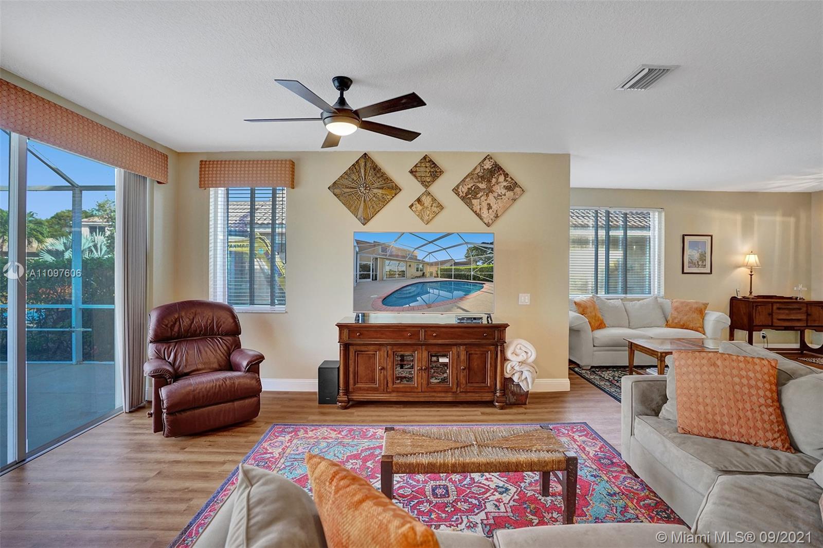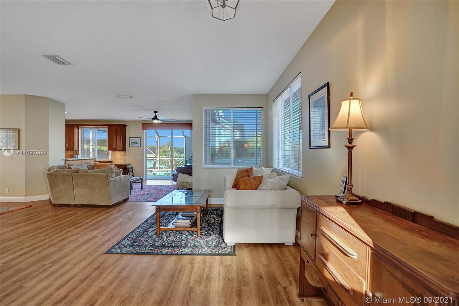 First time on market in The Ridges with 4 bedrooms and 2.5 baths and 2 car garage. Home is immaculate and shows beautifully with all wood flooring throughout home. Gorgeous kitchen with wood cabinets, marble backsplash granite & stainless steel appliances. Nice floor plan with formal dining, living and family room and all bedrooms upstairs. New windows upstairs and accordion hurricane shutters throughout. Enjoy tranquil and stunning long lake views from your screened pool area with a free form pool. Close to the best schools and restaurants. This home won't last!
