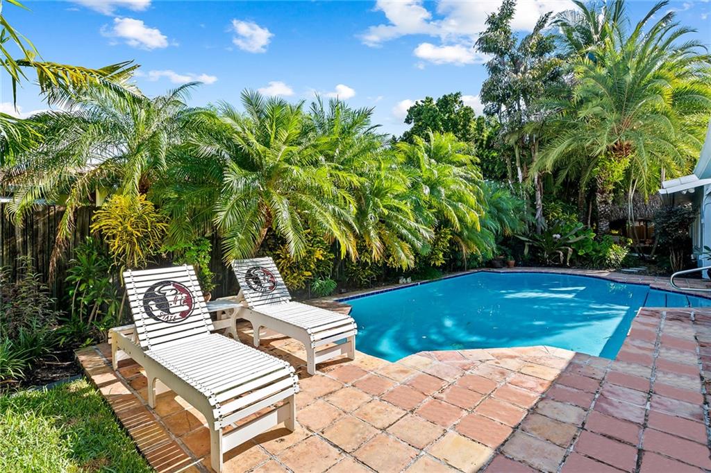 RARE chance to own a beautifully maintained Florida tropical-oasis styled home boasting 3 beds, 2 baths, with a separate guest/in-law/renter's suite. Tucked away perfectly into the heart of Coral Ridge with newly inserted hurricane impact graded windows and doors. 2014/2015 barrel-tile roof, new landscaping, generously-sized pool, covered patio/exterior dining, and Tiki Hut will fulfill any entertainers dream two fold. Oversized 2 car garage with AMPLE storage space and built-ins. Separate guest/renter's suite includes 1 bed, 1 full bathroom, closet space and an option to insert a kitchenette. The Florida tile in the home is in PRIME condition. Priced to sell. Re-done homes in area going for 1.3-1.4. A-rated Bayview School District, Country Club, Yacht Club, walk to beach, mall, A+ dining.