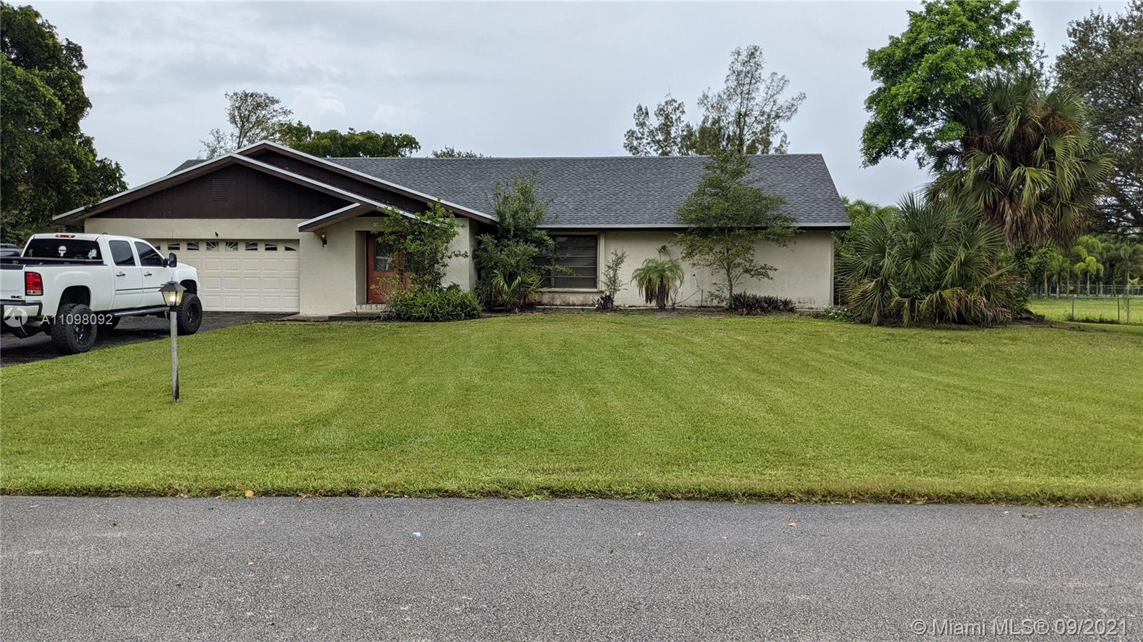 Large 3/2 Single family home in desired area of Southwest Ranches. Natural light, open concept floor plan with high smooth ceilings and walls throughout the house. Oversized master bedroom with huge walking closet and expansive bathroom. Newly remodeled kitchen, cherry cabinets with beautiful granite countertops. New floors throughout the house. New water heater, A/C was replaced about 6 years ago. New roof (2019). Huge lot, 34,904 sq. Ft. Only one entrance to this family friendly and quiet neighborhood. With NO HOA, A+ School system and close to everything. Hurry up, this won’t last.