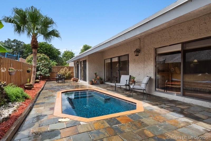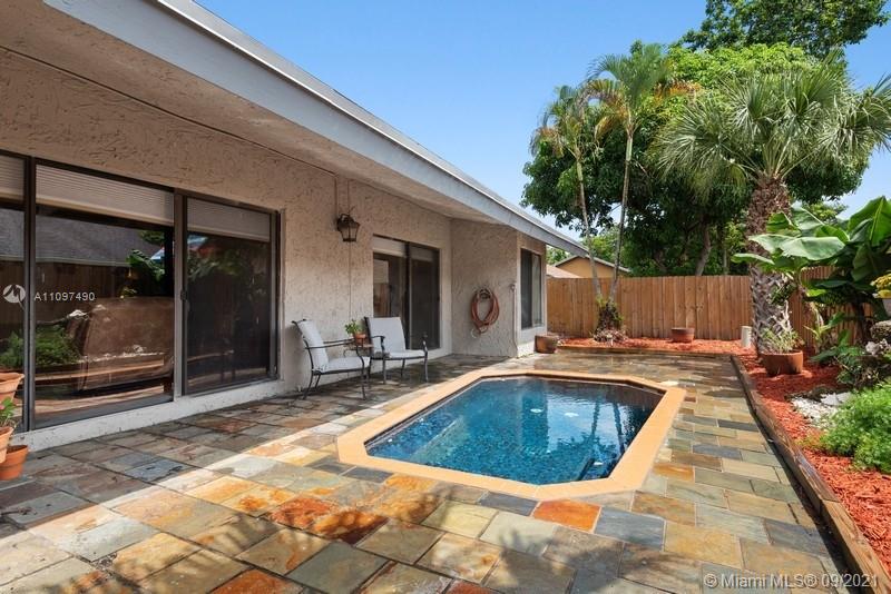 Superb corner lot tucked away on a quiet cul-de-sac in beautiful Plantation Hills. Open Great Room plan with beautiful vaulted ceilings over looking relaxing backyard & pool area. 3/2, 2 car garage. Roof and insulation is brand new-2021, new fence, exterior freshly painted. Guest bathroom remodeled 3 years ago. Beautiful hardwood flooring and tiled floors. Sliding glass doors all along the back to enjoy viewing the pretty backyard. Large laundry room between kitchen and garage. A/C-2012. No HOA, and this lovely neighborhood is just minutes to parks, shopping, dining and major roadways.
