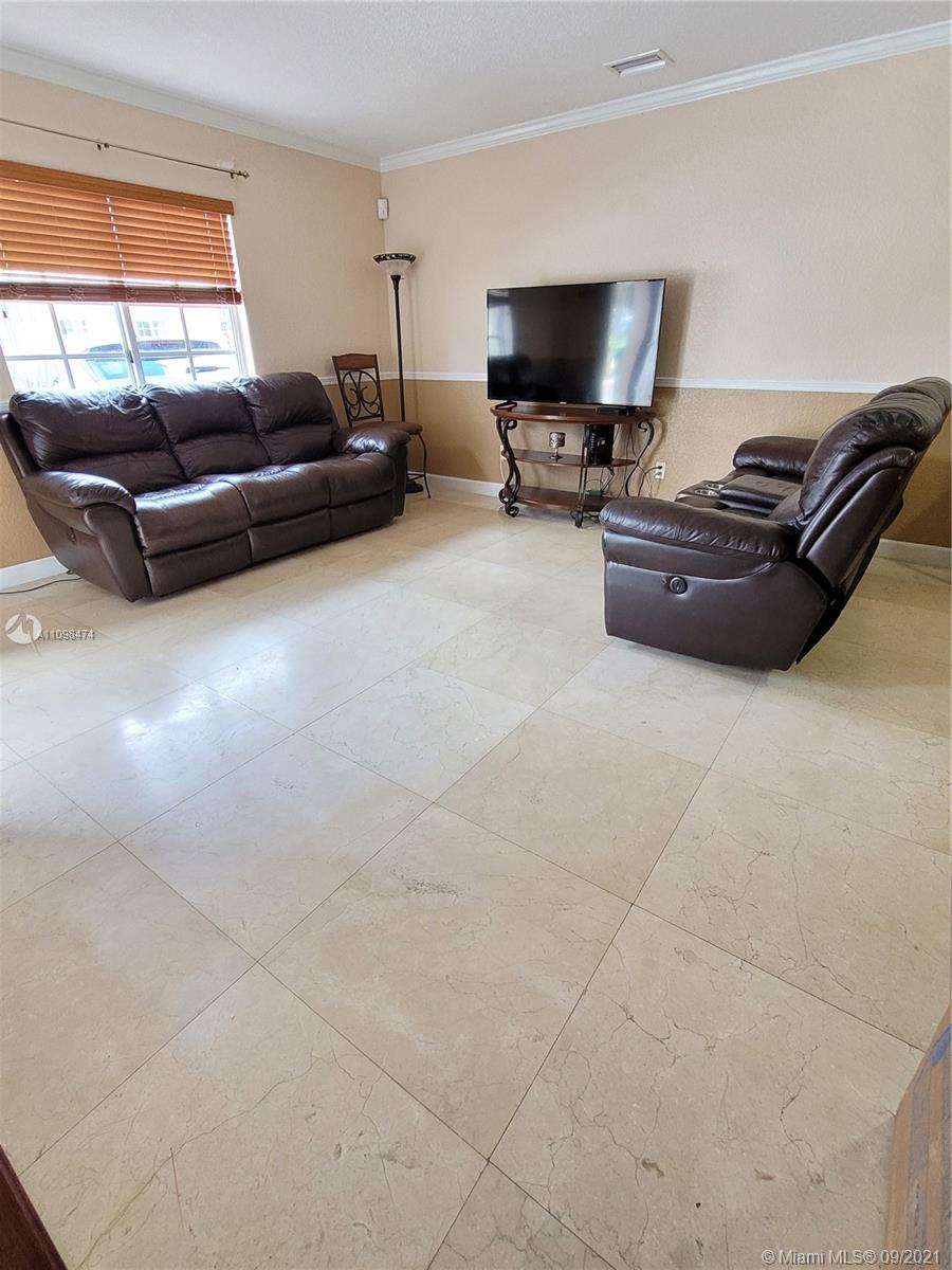 You just found the Perfect Home, at the Perfect Price in Miami Lakes! Completely Remodeled, and with a low maintenance fee that covers the Roof and the exterior Insurance. This 3 bed/ 2 bath home has an open floor plan and 1 full Bedroom & Bath downstairs. Beautiful travertine tile throughout. Large screened in Patio & Open Porch as well. Excessively large Master bedroom upstairs with a Jack & Jill Double vanity Master Bath. Third bedroom features an open balcony overlooking the beautiful community. Washer and dryer room is conveniently upstairs. Home has three parking spaces directly in front. Perfect for any buyer! Will not last!!!Equal Housing Opportunity.