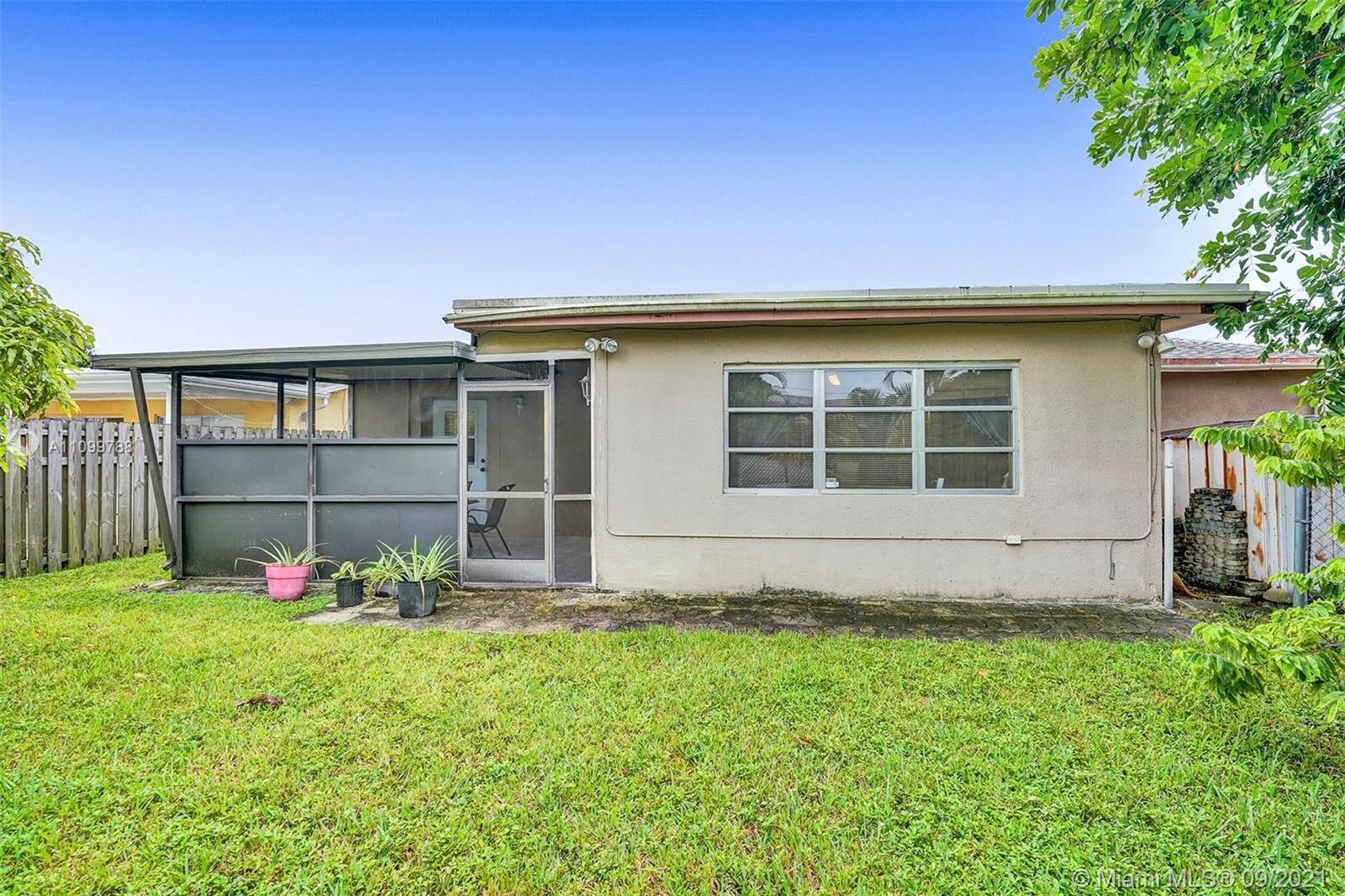 BACK ON THE MARKET. NEW FLAT ROOF RECENTLY ADDED. PERMIT CLOSED. Beautiful Single-family home located in West Sunrise on a quiet street which features 3 bedrooms and, 2 bathrooms with a 1-car garage. Highlights include an enclosed screened-in patio, Florida Room (which can be used as a 4th bedroom or office), a spacious fenced backyard with fruit trees including mango, sugar apple, banana, ackee, and coconut. Utility shed for storage. Outdoor space has plenty of room for a pool. Shingle roof approx 2006, Back Flat roof 2019, front flat roof 2021, A/C, Hot Water Heater, and washer and dryer 2019. Located near world-class Sawgrass Mills Outlets, BBT Center, parks, public library, and restaurants. Close proximity to highways/ major roads and NO HOA.