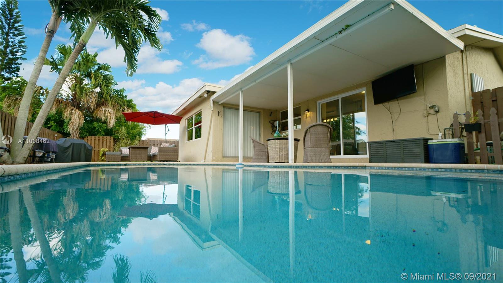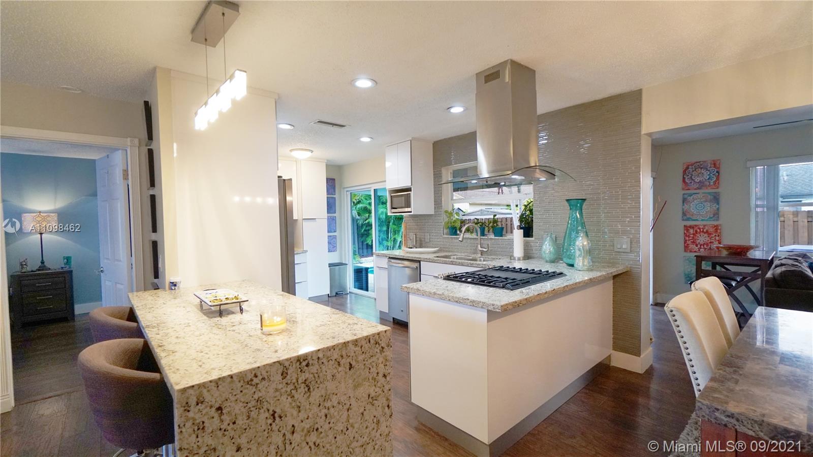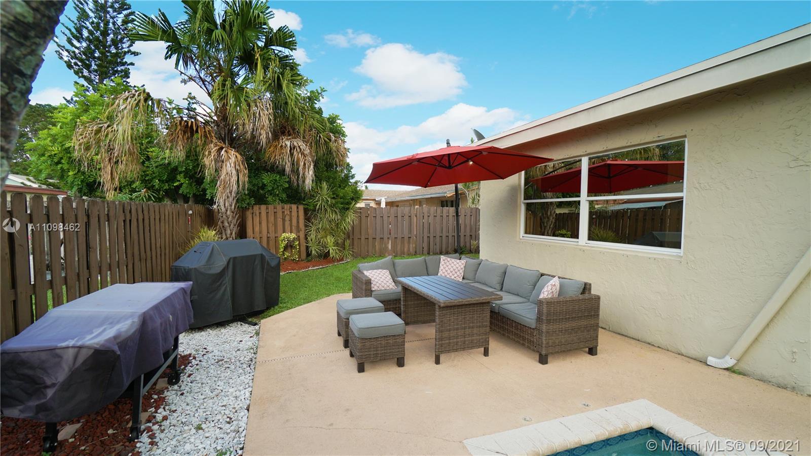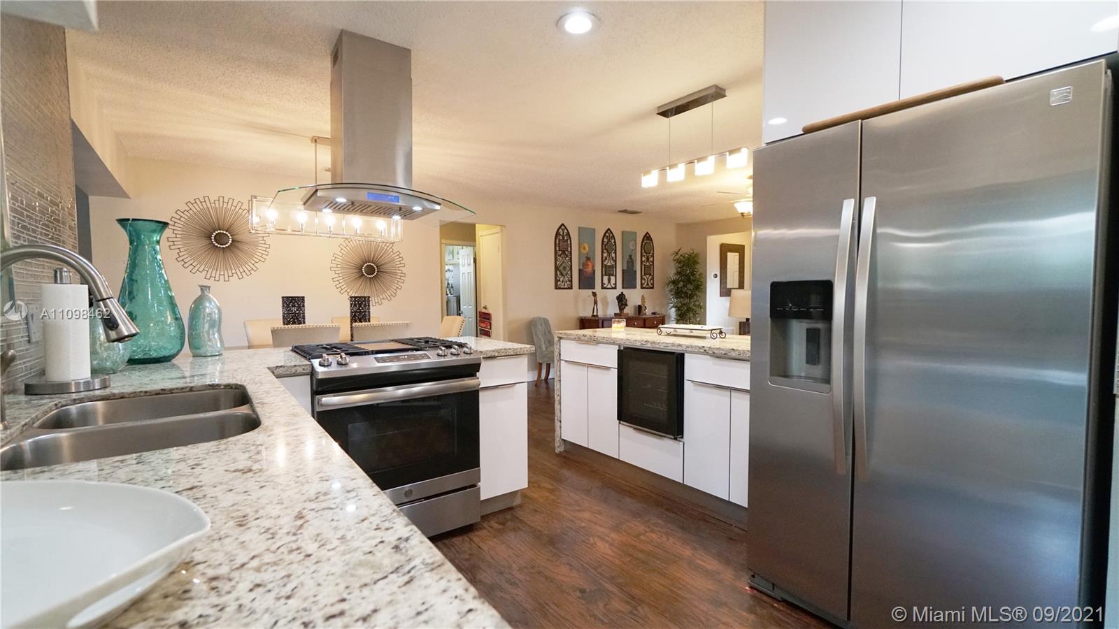 Delighted Family-Friendly One-story Home. Enjoy The Open Floor Plan great for Entertainment with the beautiful Customized and remodeled Kitchen in the Heart Of The House, with granite countertops and fancy backsplash, wonderful crisp, white cabinetry, under-counter wine cooler & Stainless Steel Appliances, All gas Range-oven, Dryer & Water Heater. All Wood Floors, All Remodel Bathrooms Exquisite taste Lighting fixtures throughout the entire Home Included. Spacious Backyard great for entertaining and outdoor activities comes with a flagstone patio, an In-ground Splashy Pool! with a new water pump. Cul-de-sacs street on both ends. 3 Years old roof, No HOA. Near the Sawgrass Mills Mall, BB&T Center, Hotels, Restaurants, and easy access to all major highways. Check Virtual tour!