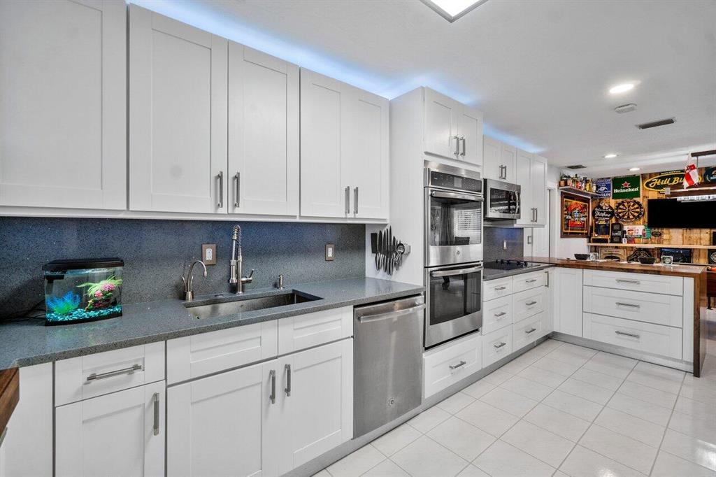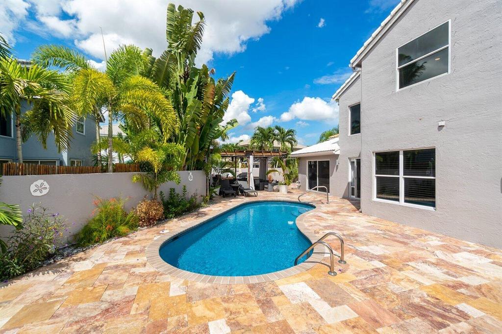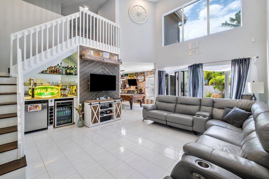 Tucked away in Mission Bay's gated subdivision of Regatta is this 5BR 3.5BA two-story pool home, with a massive travertine patio! Sweeping high volume ceilings highlight the light and bright floor-plan, featuring a first-floor primary suite with custom walk-in closets, separate tub and shower. The completely upgraded custom kitchen was extended and includes a butcher block waterfall breakfast bar! Built-in bar houses a fridge, with a keg and tap. Tile floors throughout first-floor, 5'' oak plank flooring in all bedrooms. Second-story features a private ensuite with 3 additional bedrooms and a completely updated bathroom with double vanity. Newer pool pump and heater. Roof 2010, A/C 2017.