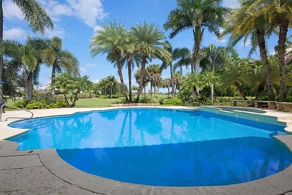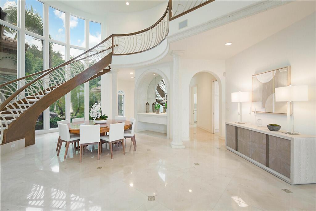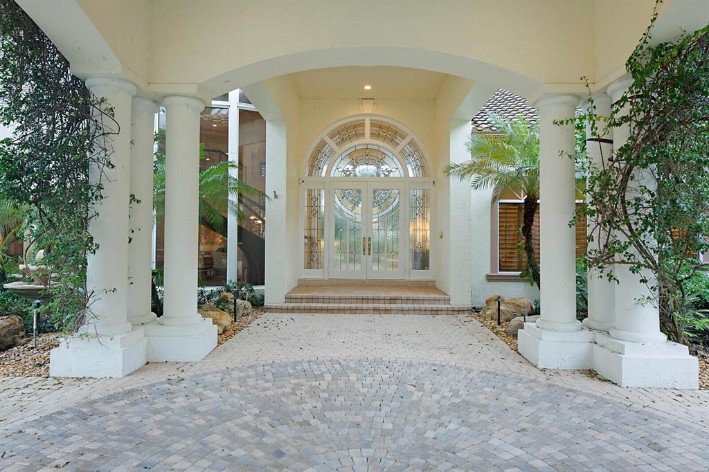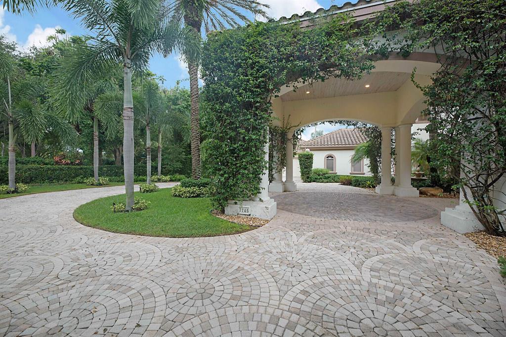 The Island, a private gated subdivision with only 12 custom homes with lake and golf course views is the jewel of Boca West Country Club. Exceedingly private and beautifully landscaped this rarely available home boasts 7728 square feet of living space plus 5 garages. Nestled on a .66 acre lot this stately home features 5 bedrooms, 7 and half baths, library, home theatre, wet bar, gym and elevator. Drive up to the porte-cochere and enter the home though its gracious foyer, where the home's character, style, and quality are immediately apparent. The 19 foot long foyer opens to a spectacular open-plan main living area withliving room, dining room, bespoke grand staircase and the most magnificent view of the backyard with lake and golf course views.