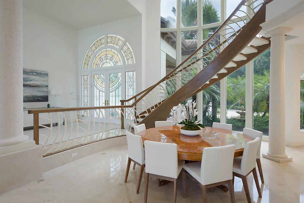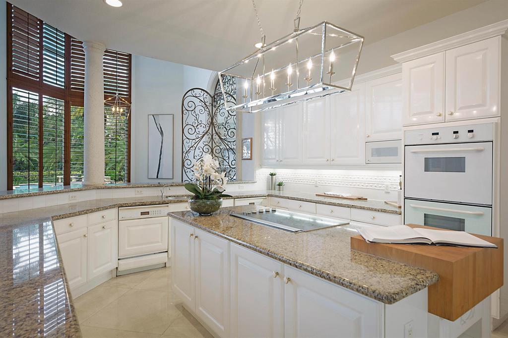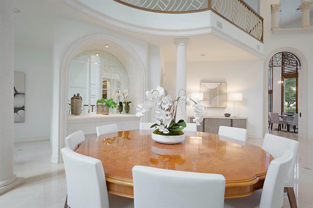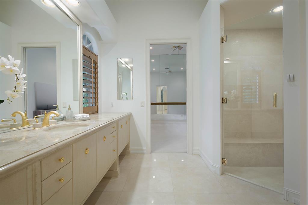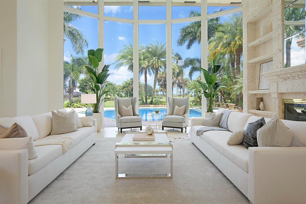 The Island, a private gated subdivision with only 12 custom homes with lake and golf course views is the jewel of Boca West Country Club. Exceedingly private and beautifully landscaped this rarely available home boasts 7728 square feet of living space plus 5 garages. Nestled on a .66 acre lot this stately home features 5 bedrooms, 7 and half baths, library, home theatre, wet bar, gym and elevator. Drive up to the porte-cochere and enter the home though its gracious foyer, where the home's character, style, and quality are immediately apparent. The 19 foot long foyer opens to a spectacular open-plan main living area withliving room, dining room, bespoke grand staircase and the most magnificent view of the backyard with lake and golf course views.