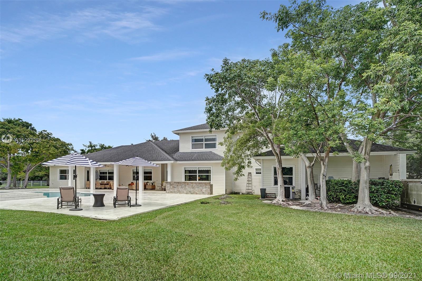 Modern Florida Living in prestigious Rolling Oaks neighborhood of Southwest Ranches with over 2 acres of land. Peace, Privacy & Tranquility redefined in this sprawling estate with beautiful pool area and large pond. Enjoy all-year perfect breezes from large porch and completely fenced-in property. This 2004 home features 5 total bedrooms (3 are en-suite) and 5 bathrooms, high-ceilings, crown molding, impact windows and doors, large gourmet kitchen with oversized eat-in island, generator, central vacuum system, 4-car garage, ample storage throughout and so much more. You can have your own soccer field or even horses - sky is the limit!