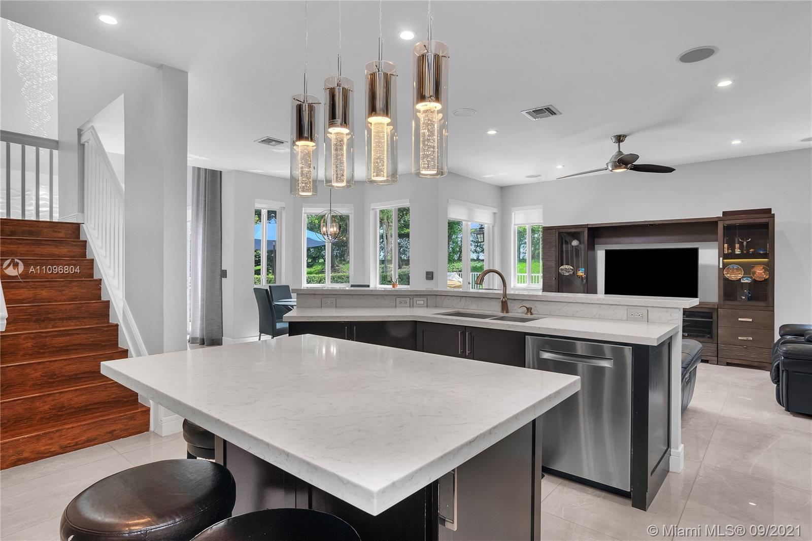 The FRESNO-5 Bed and 3 FULL Baths w/3 Car Garage with FULL IMPACT GLASS Windows and Doors! (1 Bed and 1 Bath Down-NOT the Master) INTERIOR FEATURES: Large (24") Porcelain Tile on Lower Level•Wood Floors on stairway & in ALL Bedrooms•Volume Ceiling in Formal Living Room•Formal Dining Room•FRESHLY Painted Interior•Granite Counters in the CUSTOM Designed ISLAND Kitchen•NEW 42" Cabinets•Stainless Steel Appliances•Interior Laundry•ALL Baths are Updated!•Master Bath is DUAL Sinks/Corner Soaking Tub••EXTERIOR FEATURES: HUGE Pool and Patio•Fully Fenced Yard•FRESHLY Painted•Exterior Lighting•Pressure Washed Roof•Brick Paver Drive for the 3 car garage•Rain Gutters•Near Guest Parking•