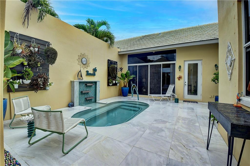 Come experience this luxurious piece of paradise! You’ll immediately fall in love in the courtyard of this COMPLETELY remodeled home when you see the private pool surrounded by white marble decking. Enter the main home where you’ll find volume ceilings, gorgeous rectified porcelain flooring, a modern kitchen with quartz counters & the large primary bedroom suite, with 2 closets & a Kohler 100 gallon soaking tub with heated back. Head through the courtyard to the guest house which features a fully renovated room & bathroom. Finally, take the spiral staircase to the 3rd bedroom (above the 2 car garage), featuring a kitchenette & full bath. Enjoy sights of holes #11 & 12 from the back patio. Country Club membership NOT required. HOA maintains lawn, exterior paint, basic cable & landscaping.