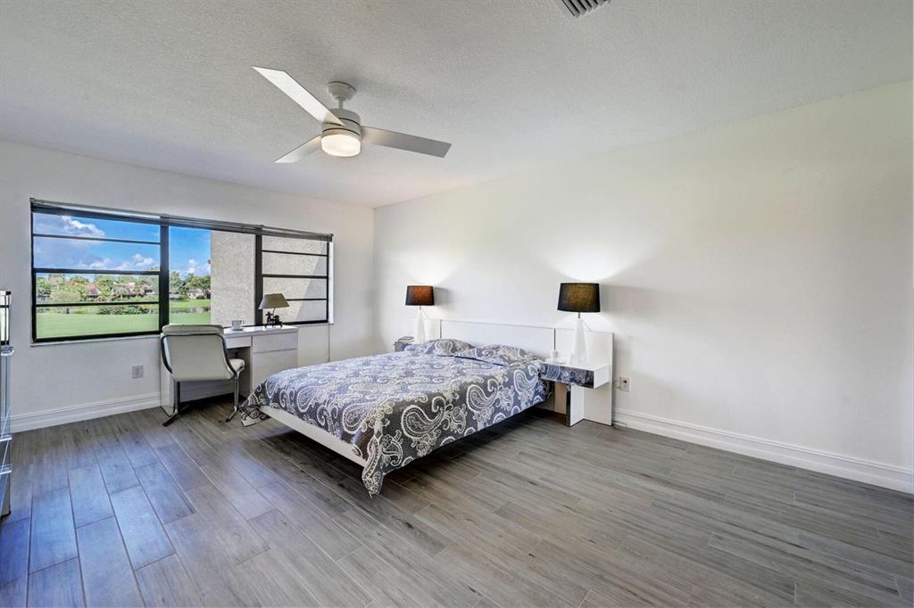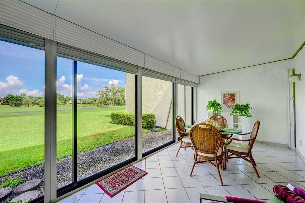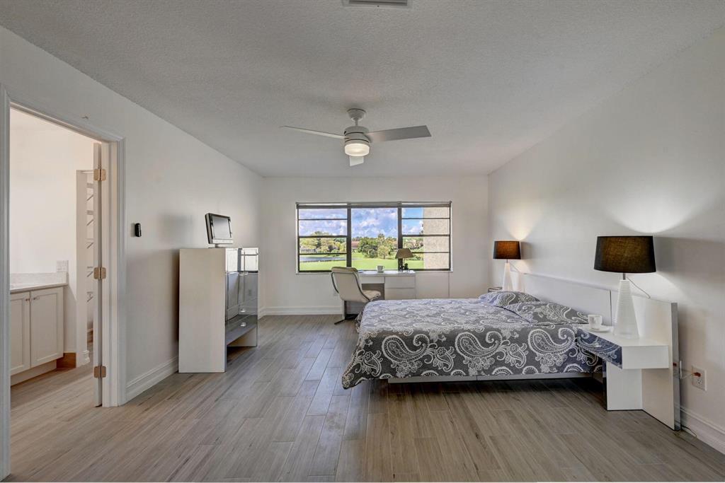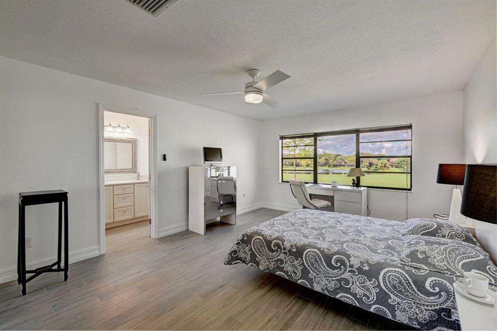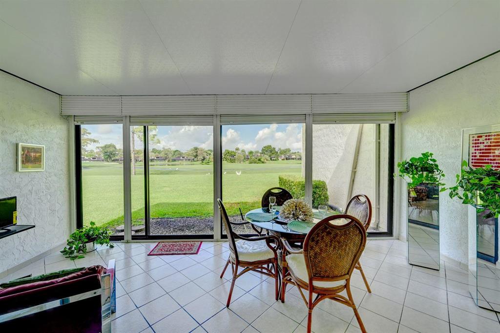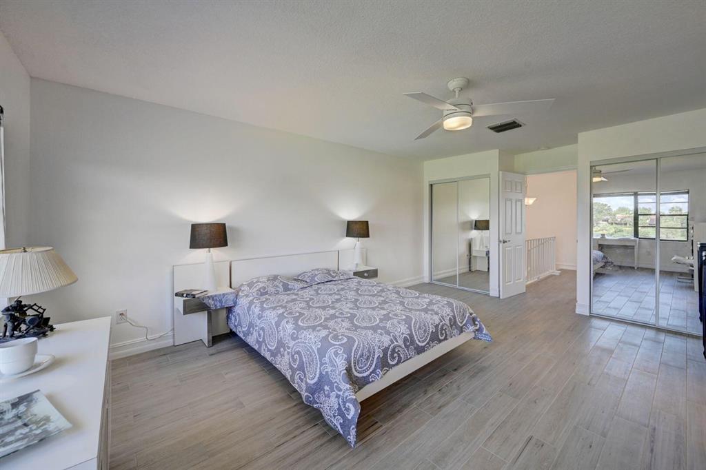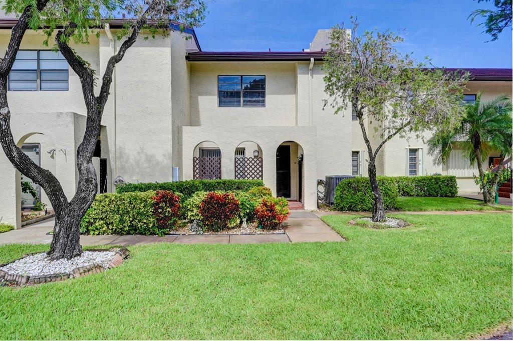Renovated Unit with spectacular golf and water views. Rarely available townhouse. With enclosed Florida room which overlooks this expansive open golf view. Brand new kitchen with quartz counter tops. New stainless appliances. On main level beautiful appointed 1/2 bath and large storage closet.Upstairs are 2 bedrooms with full bathrooms en-suite. New ceramic tile and matching gray laminate flooring provide a sleek look to this open and bright home. Large open window from master bedroom overlooks Boca Lago world famous golf course. Large walk in closets off well appointed updated bathroom. 2 other closets in master provide for plenty of storage. Second bedroom has plenty of space and bathroom en-suite. Pool for community is close by and assigned Boca Lago has a non mandatory country club