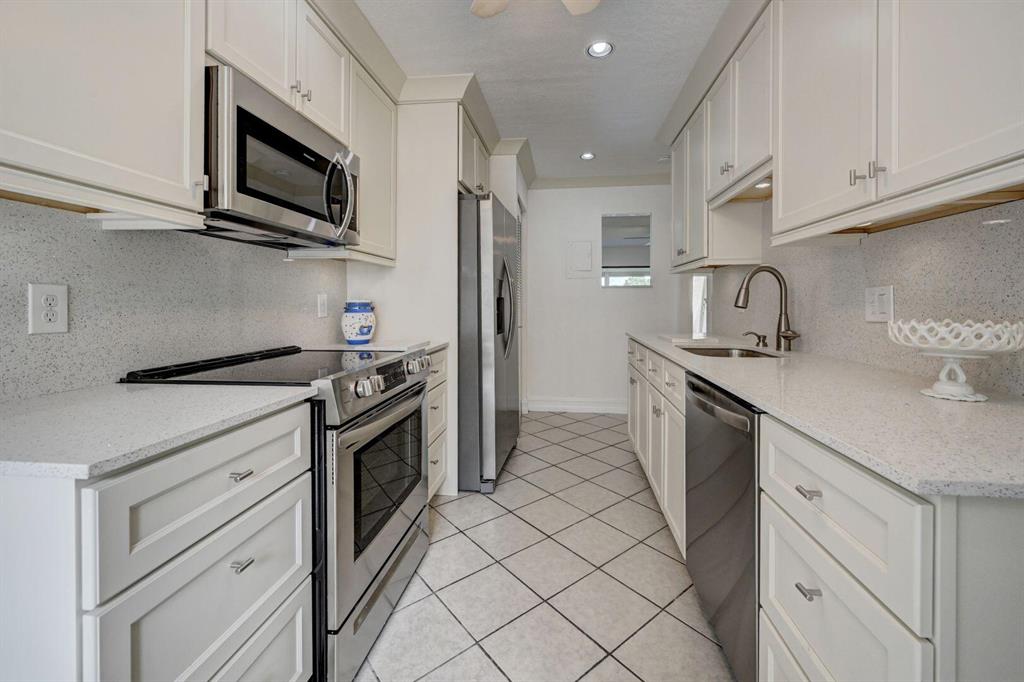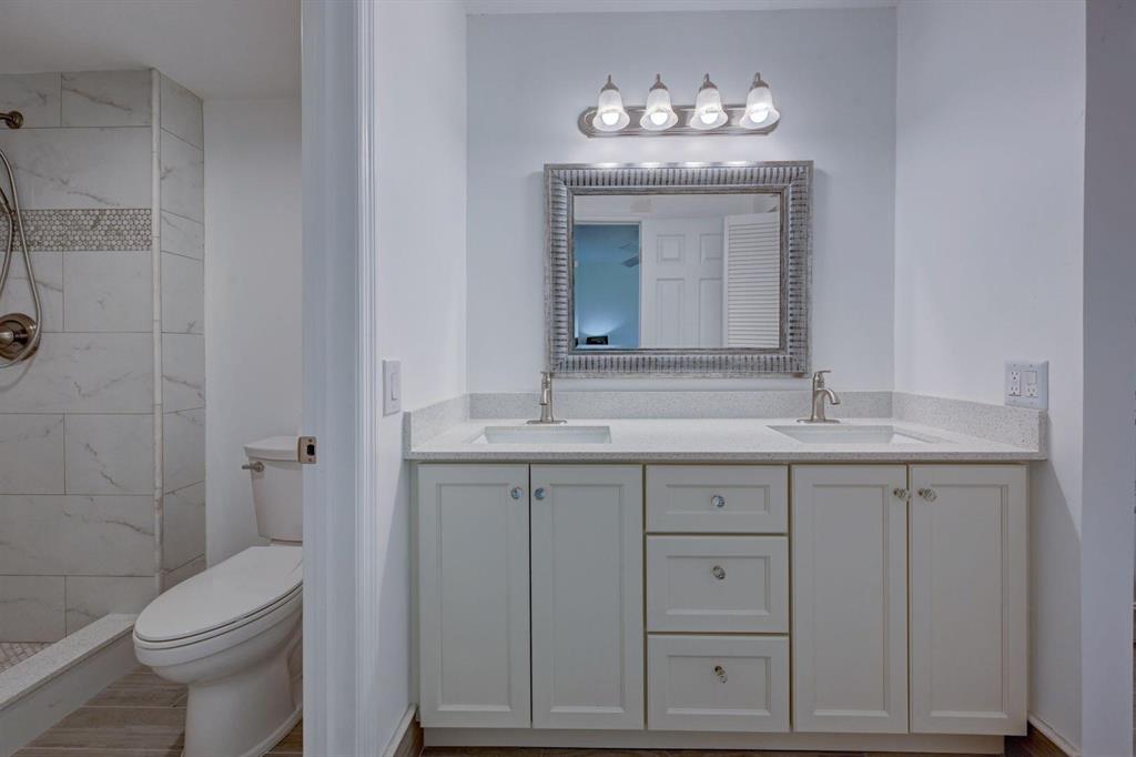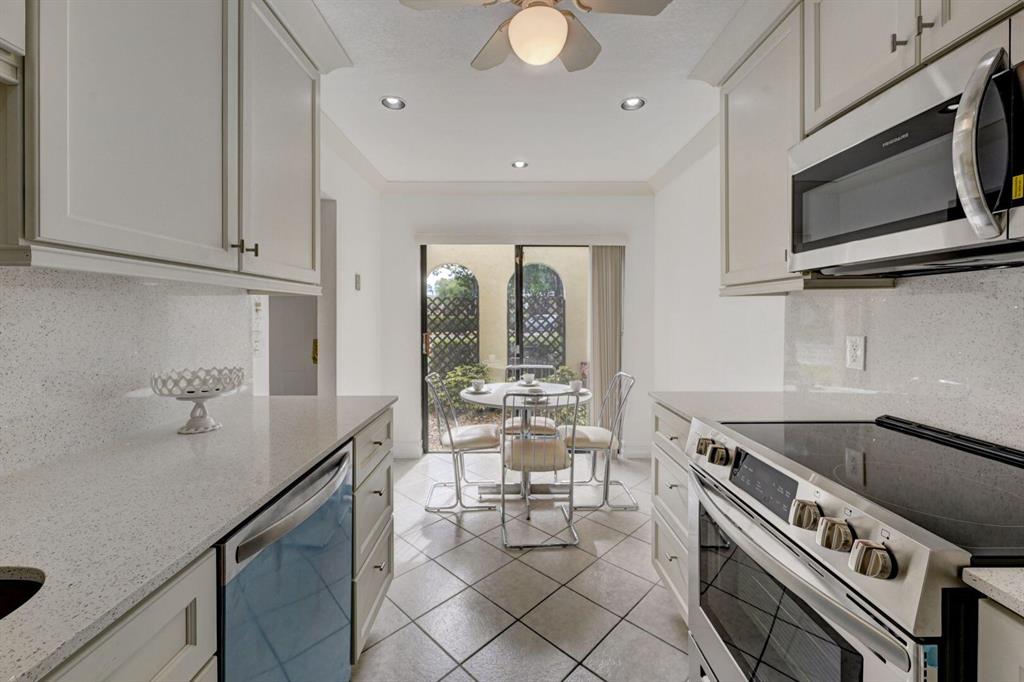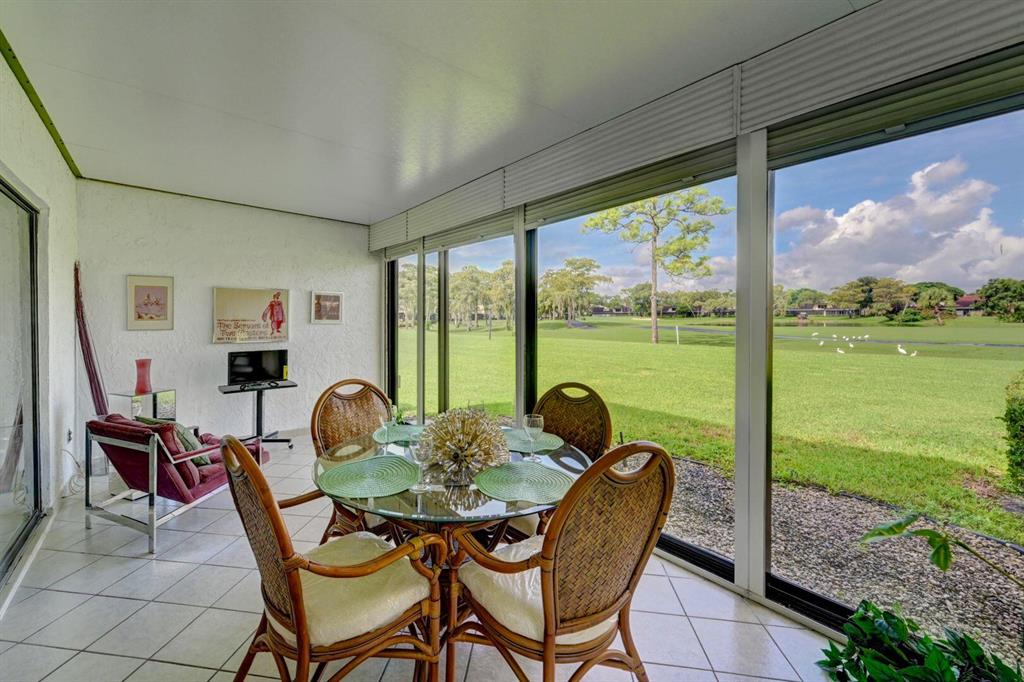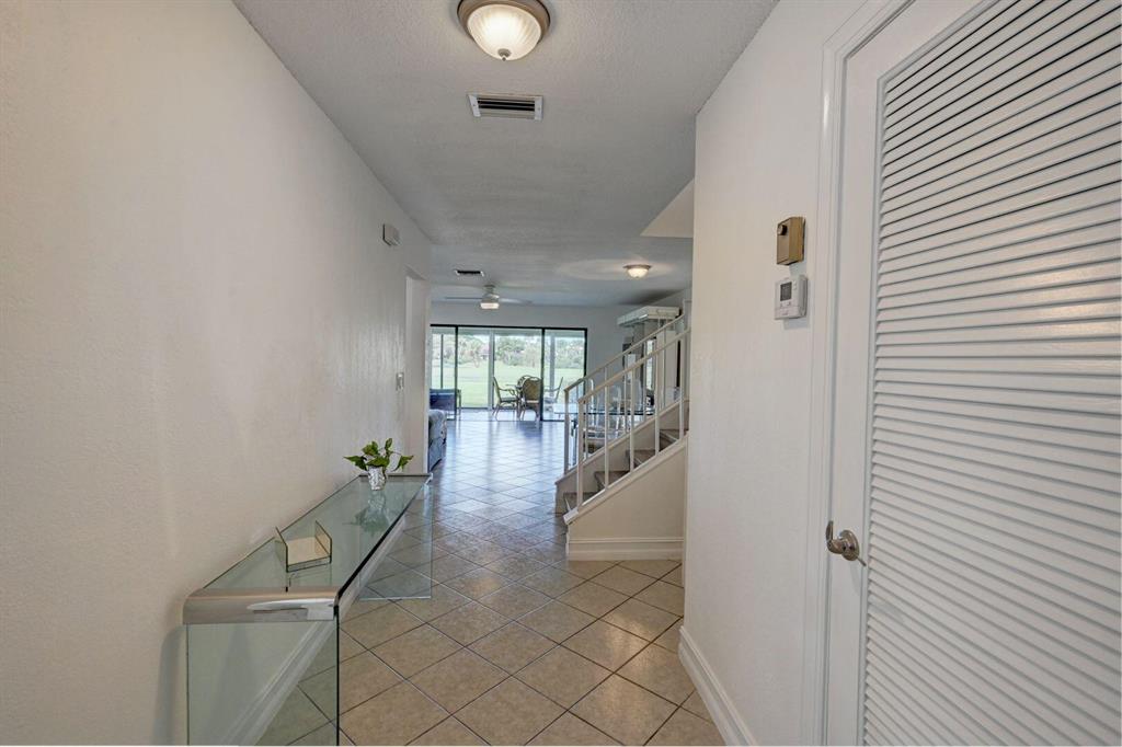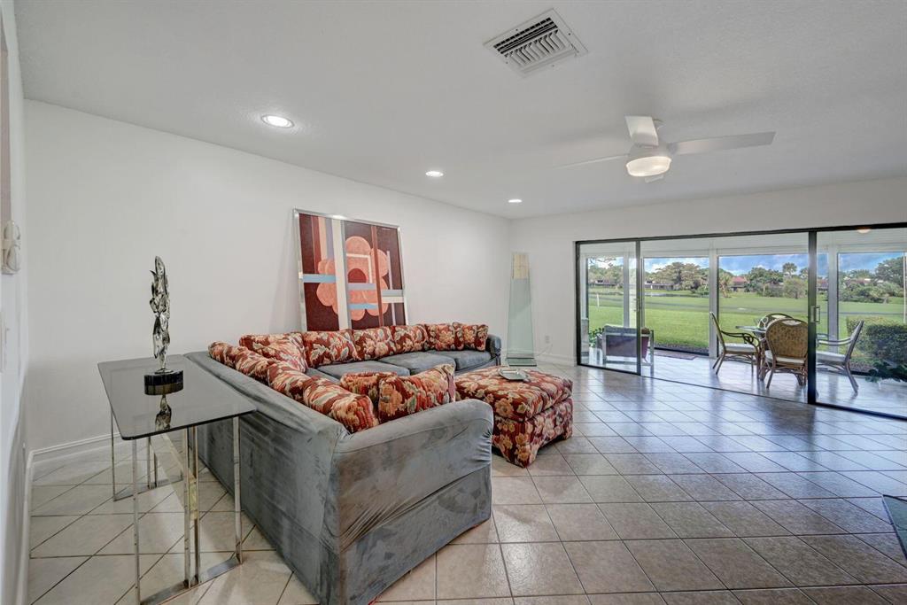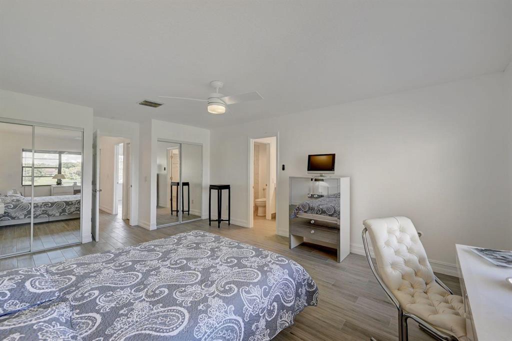 Renovated Unit with spectacular golf and water views. Rarely available townhouse. With enclosed Florida room which overlooks this expansive open golf view. Brand new kitchen with quartz counter tops. New stainless appliances. On main level beautiful appointed 1/2 bath and large storage closet.Upstairs are 2 bedrooms with full bathrooms en-suite. New ceramic tile and matching gray laminate flooring provide a sleek look to this open and bright home. Large open window from master bedroom overlooks Boca Lago world famous golf course. Large walk in closets off well appointed updated bathroom. 2 other closets in master provide for plenty of storage. Second bedroom has plenty of space and bathroom en-suite. Pool for community is close by and assigned Boca Lago has a non mandatory country club