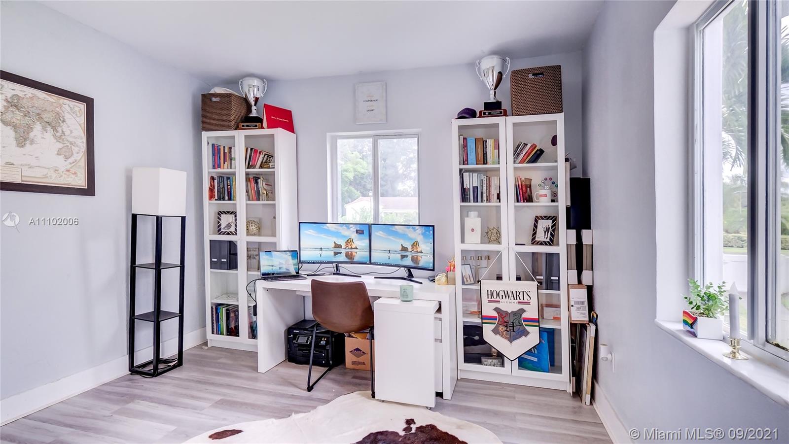 Welcome to The Santorini Sol of Miami Shores. Minutes from Downtown Miami Shores, this fully updated sun-drenched mid-century Mediterranean oasis sits on a desirable double-wide, private lot featuring a large entertainment deck and lush landscaping. The bright, open-concept great room anchored by a honeycomb stoned fireplace flows into the updated kitchen and dining area equipped with smart appliances and designer finishes. The relaxing media room features flex-space perfect for an office, den or formal dining. Retire to your oversized suite separate from main living areas and guestrooms for ultimate privacy, which features a beautiful shower and large walk-in closet. Home complete with smart lights/lock, spacious bedrooms, impact doors-windows, new roof/electrical/plumbing/remote gate.