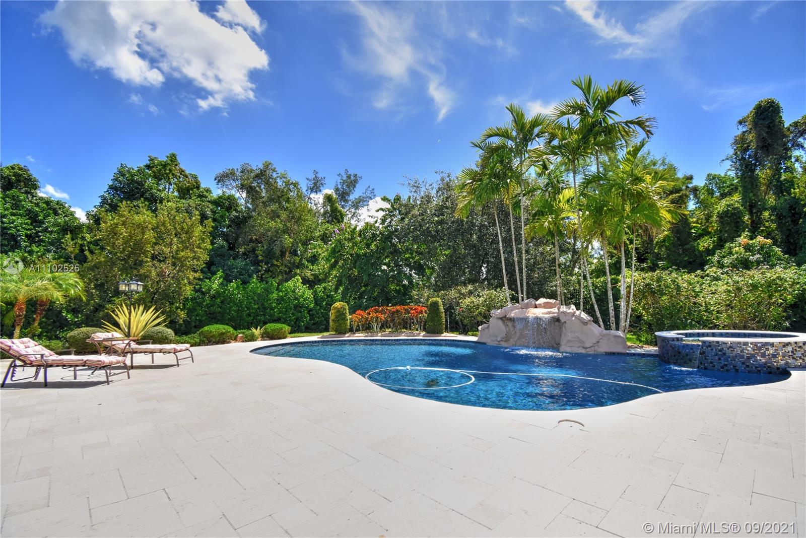 Pristine South Florida 1+ Acre Estate immaculately 5 beds 3/1 baths 6,100 total sq ft. Private road & Culdasac Spectacular lush landscaping, fruit trees, gorgeous flowered trees and a basketball court. All this, while offering maximum privacy with a completely fenced backyard and no neighbors on 2 sides. There is a newer renovated 2018 oversized pool and hot tub plus over 2500 sq ft white marble on the patio for entertaining. kitchen is a chefs and entertainers dream with 2 ovens and sinks and a x-large island. Brand new roof ,gutters and master closets finished in August 2021. New bed flooring, hot water heaters and alarms also installed in 2021. Located in the exclusive neighborhood of Falcon Estates Live, Work & Play @Plantation Acres home! Close to shops , Sawgrass Mills and beaches.