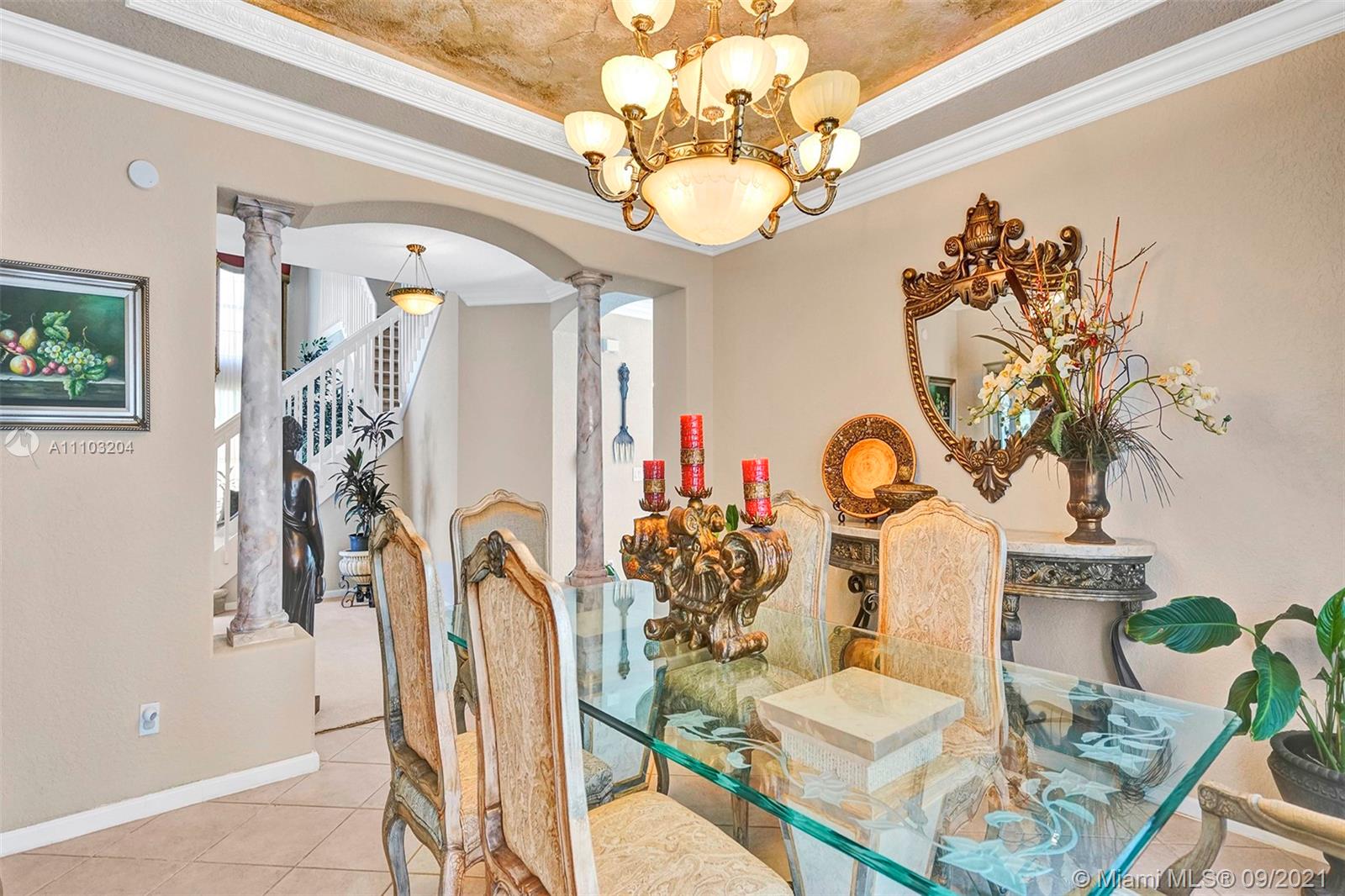 Sun-filled, well maintained GL Rebecca model with western exposure. 6/4, 3750 sqft., 3 car garage. Elegant split staircase leading to a private second master on the left, remaining rooms on the right. Bedroom & full bath downstairs. Spacious Master with walk-in closets. Captivating tray ceilings in the formal dining + master bedrooms. Open kitchen with a walk-in pantry. Hurricane impact French doors, accordion shutters throughout. Aged fruit trees with 11 different types of fruit. Room to add a pool. Low HOA. Manned gate, 24-hour security patrol. Silver Shores, Glades, Everglades district. Desirable home for multi-generational families especially during the holidays. Short walk to the Clubhouse featuring a pool, tennis, gym, playgrounds, basketball and more. Minutes to 75.