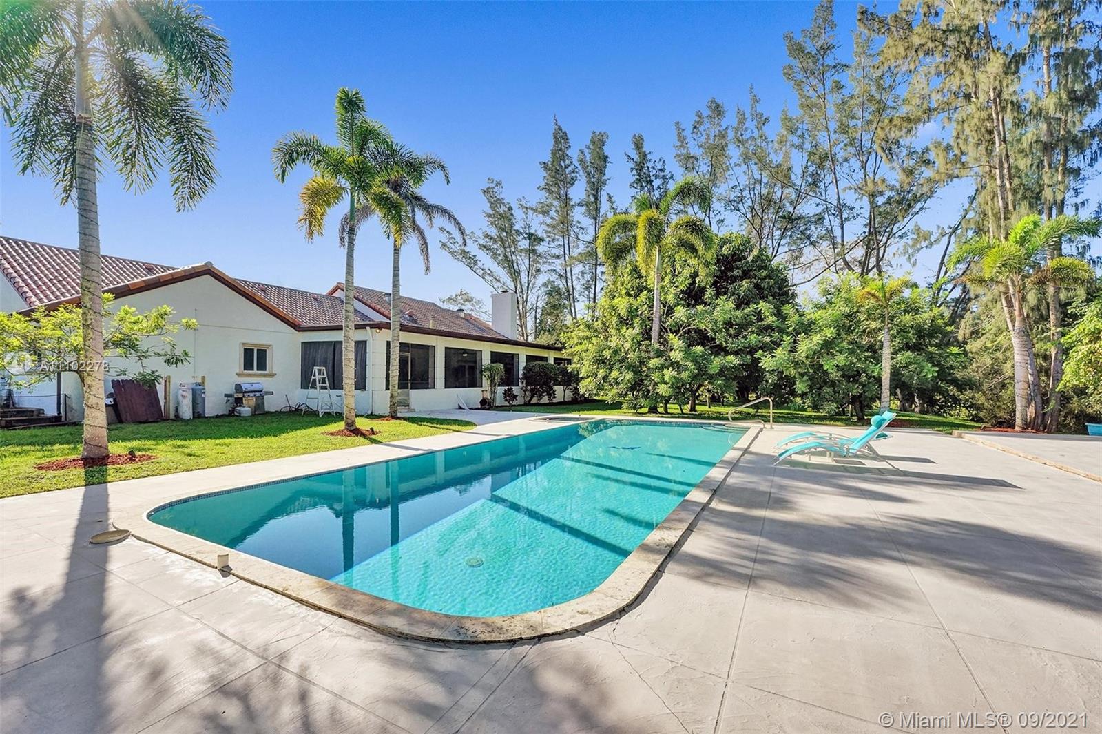 Prestigious Parkland Ranch Home on approximately 3 acres of private land. Gorgeous welcome porch, Formal dinning, Fire Place Living area, Marble Flooring, Huge Screen Porch with Custom Grill & Fire Oven equipped with a huge outside island perfect for large gatherings. Numerous Fruit Trees, such as Mango, Guanoabana, Avocados, Cashews, Plantains, and much more. This private parcel is surrounded by lushes trees a small pond and is horse permitted.