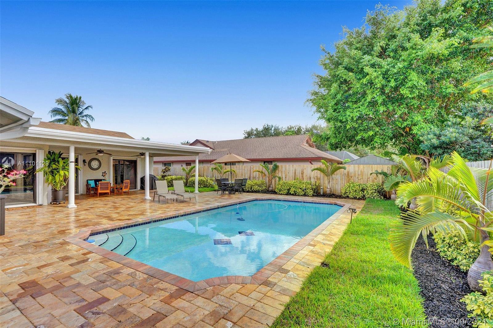 Enjoy Real South Florida afternoons poolside in this spectacular and spacious 4/3 Plantation home. Fully renovated and meticulously maintained, nothing left to do, but relax in your tropical backyard. Be the envy of all your friends with this amazing kitchen that boasts a 13ft quartz countertop, and gas stove. This most ideal split floorplan offers space for everyone and privacy. Total storm protection with accordion shutters and 500 gallon in ground propane tank, makes prep a breeze and keeps utility bills low. High tech sprinkler system makes for great lawn, completely fenced and ready for pets & toys. All of this located in one of the most desired cities with shopping, schools and worship nearby. Owner would prefer a rent back-but flexible on this request.