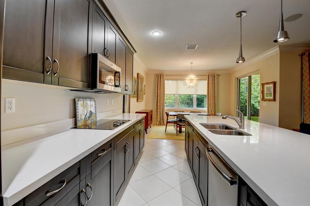 Get ready to discover your new 3 Bedroom 2.5 bath Townhome in East Boca Raton's hidden gem community of Valetta.Step inside to find an open floor plan showcasing a gorgeous chef inspired kitchen with an expansive eat-in island, granite counter tops, SS appliances, dual wall ovens, and an oversized pantry. Custom sputnik sphere light fixtures adorn the kitchen and dining area. Impact sliders lead you outside to the spacious, covered lanai which overlooks the luscious greenery of your private backyard. Enjoy your morning coffee or a glass of wine in the evening as you watch the Blue Jays and Cardinals fly around. The main level is completed with a 2-car garage, a walk-in storage closet, full sized laundry room with sink, and a half bathroom.