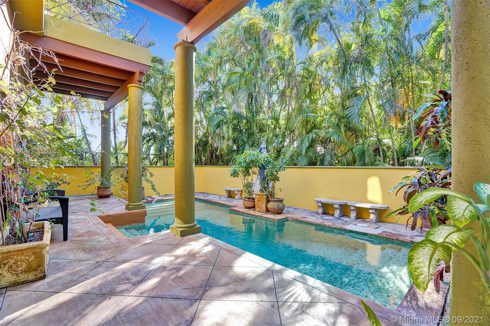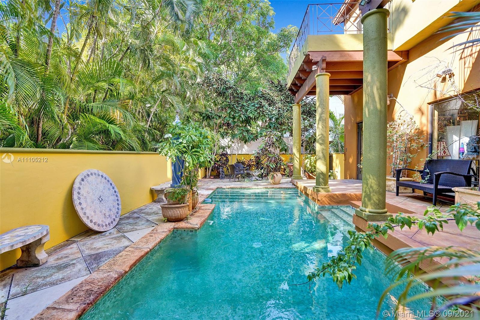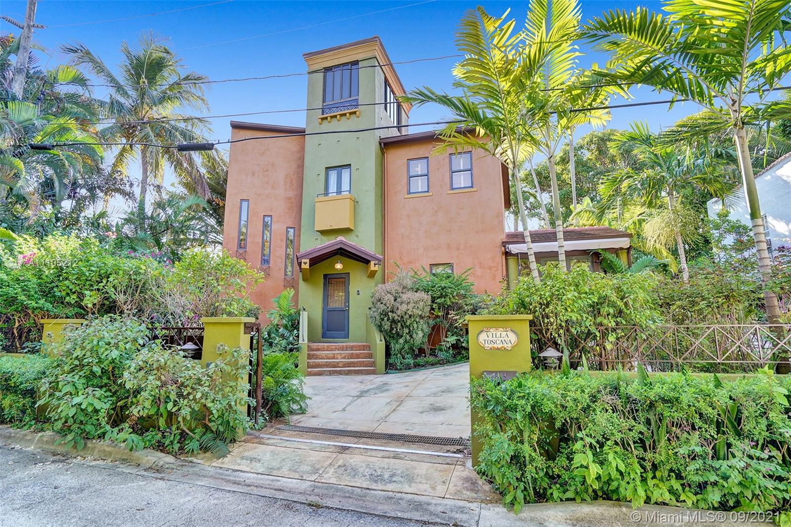 Welcome to Villa Toscana, a beautiful and tranquil Oasis located at the quiet dead end of Espanola Way. This special Miami Beach Gem has a beautiful mosaic heated pool and secluded outdoor garden/patio space. Both the master and second bedroom are ensuite and have a private outdoor terrace. New washer and dryer. Gas Stove. 11+ foot ceilings. Third bedroom has separate entrance. Fourth room has a 360 degree view on the third floor. Perfect for an office or yoga space. Gated home with parking for several cars. Located on the only privately owned roadway on South Beach. Flamingo Park, Lincoln Road Mall, Espanola Way restaurants, shops, theaters, entertainment, arts, and the Atlantic Ocean are all within a few blocks.