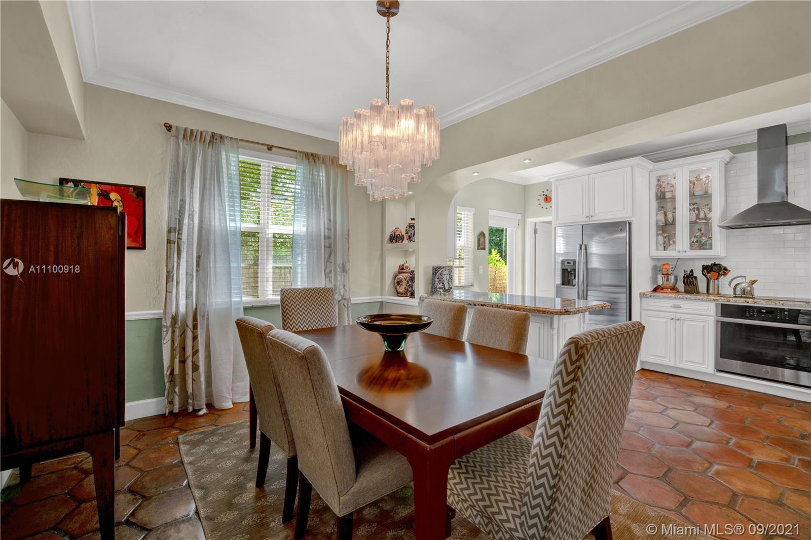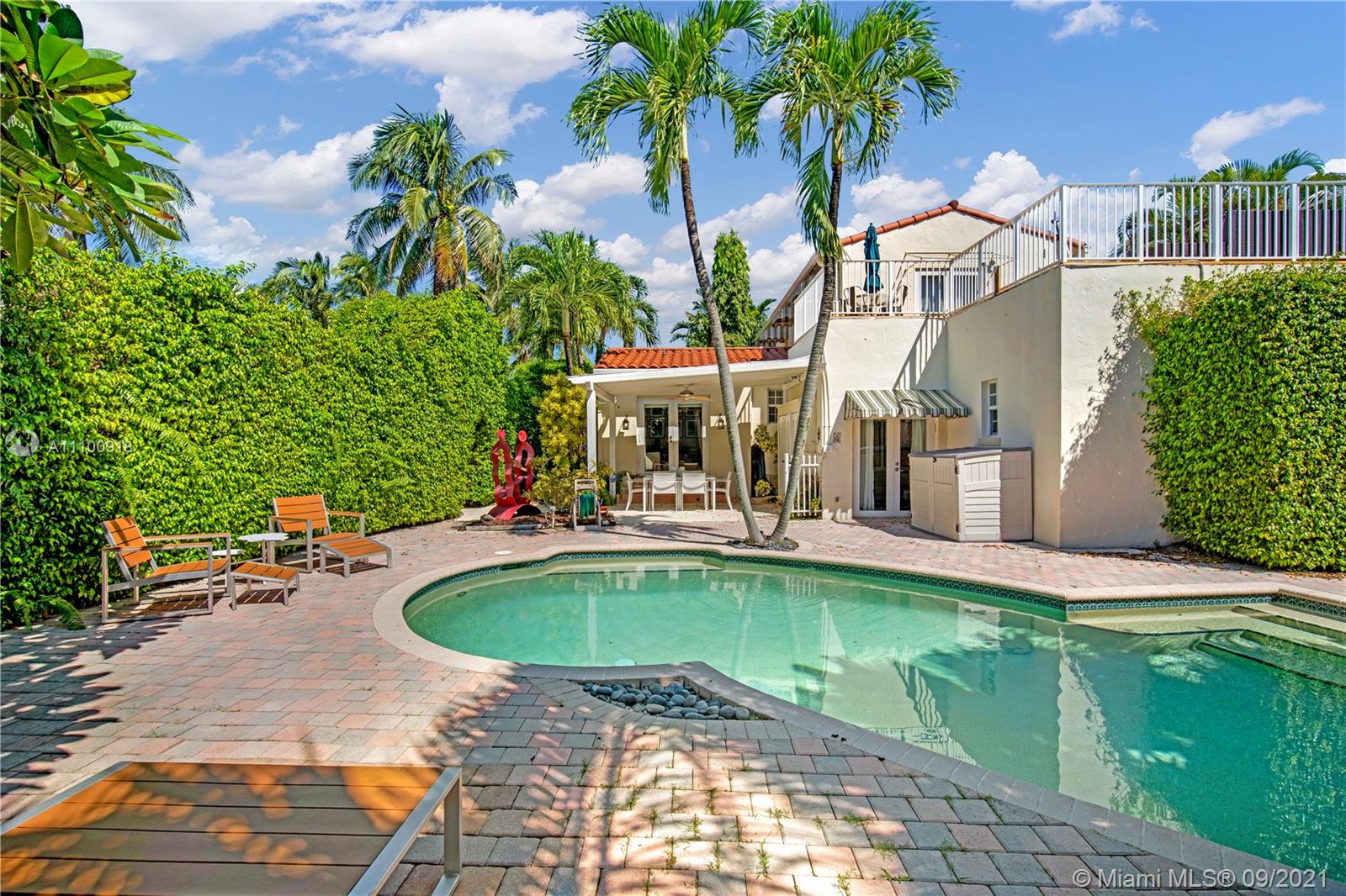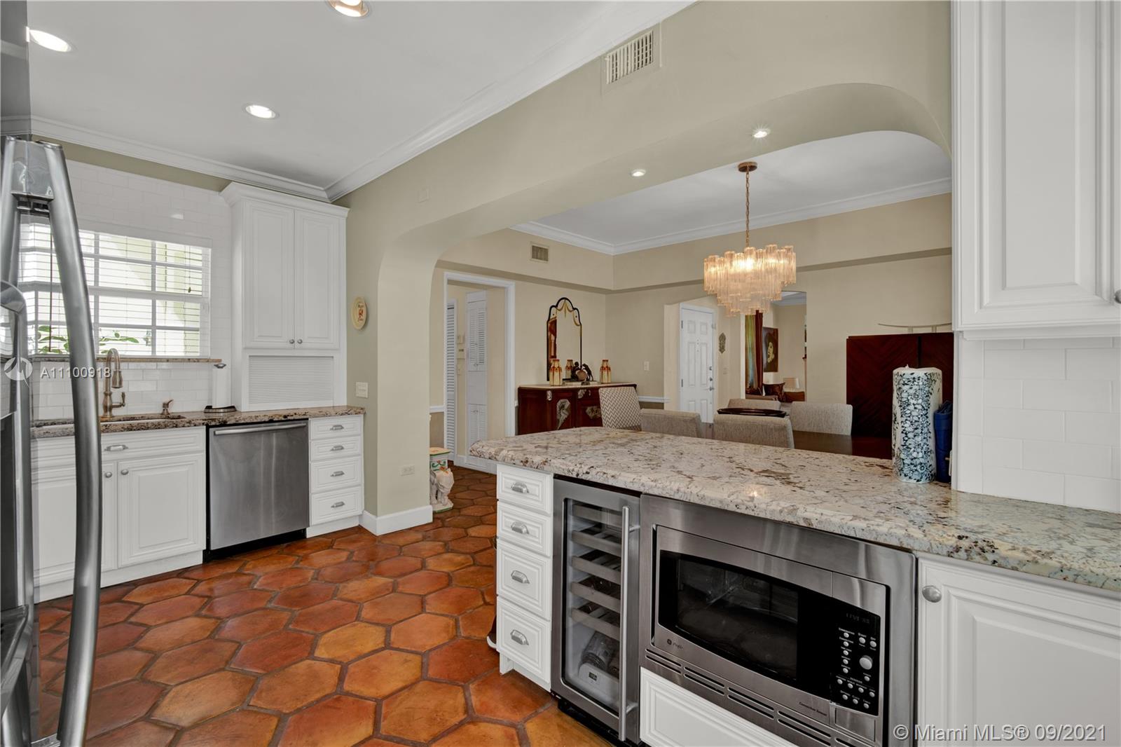 A true private oasis, this single family residence boasts 4 bedrooms with a den that can be turned into a 5th bedroom, 4 bathrooms, and 2,734 sqft of serene spaces built with a Mediterranean vibe in a lovely and quiet community. Exquisite detail and luxurious upgrades fill this home from the beautiful terracotta floors throughout the main level to the elegant fixtures, a wine cellar, and soft paint selections. A bright and airy kitchen has been enhanced with a stainless appliance suite, a focal range hood that hovers over an electric cooktop, sleek white subway tile backsplash, and rich granite countertops with beveled edging. This property is incredibly private, bordered by ficus trees that surround the perimeter giving way to privacy in the backyard oasis with paver patio.