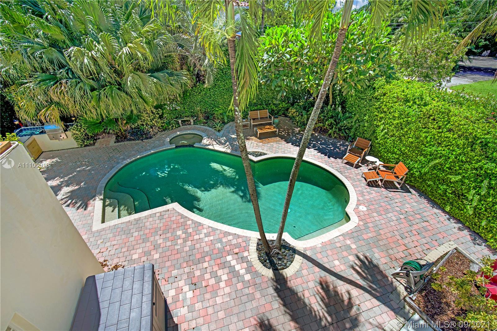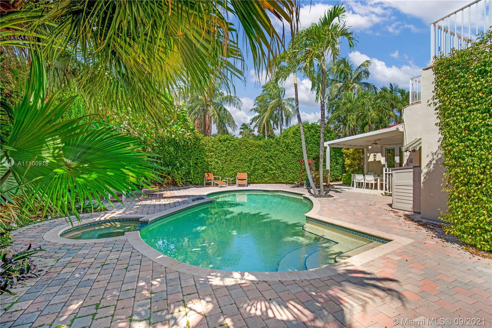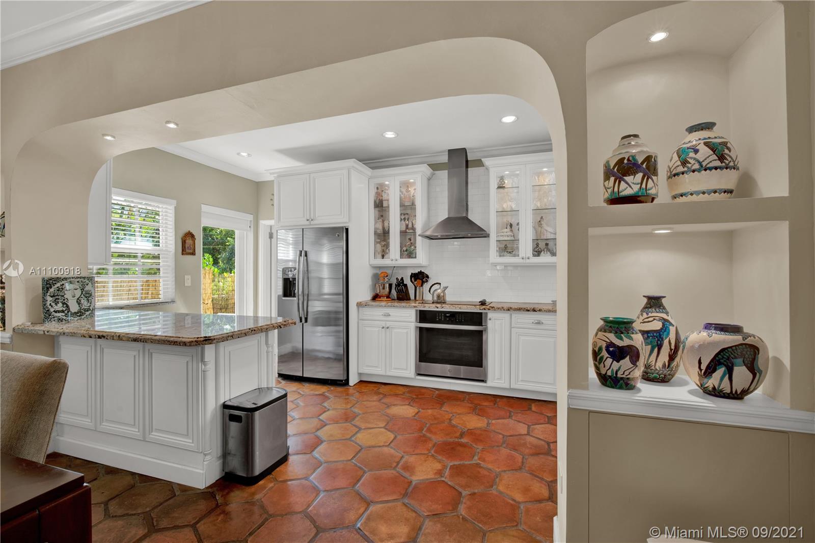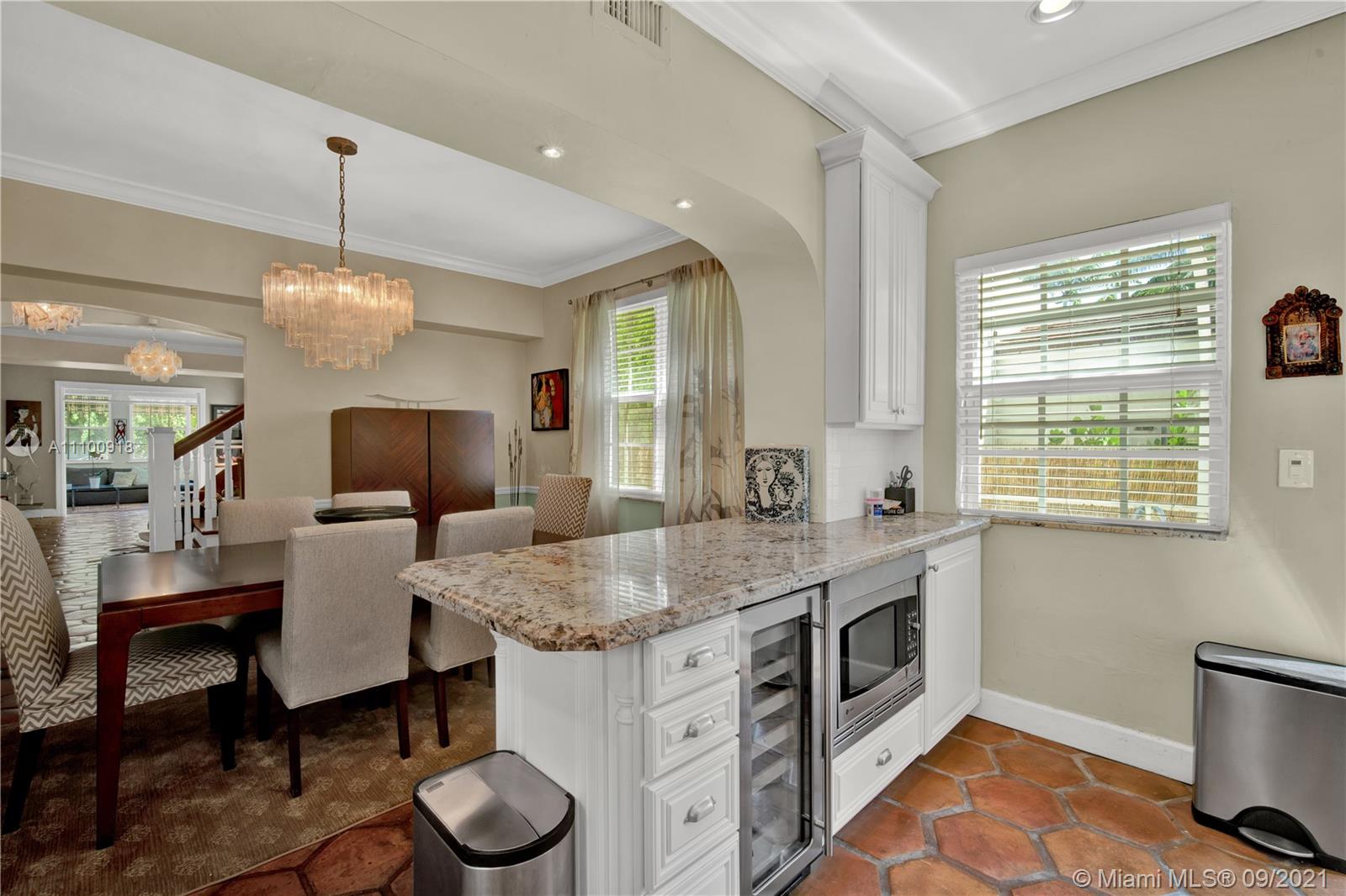 A true private oasis, this single family residence boasts 4 bedrooms with a den that can be turned into a 5th bedroom, 4 bathrooms, and 2,734 sqft of serene spaces built with a Mediterranean vibe in a lovely and quiet community. Exquisite detail and luxurious upgrades fill this home from the beautiful terracotta floors throughout the main level to the elegant fixtures, a wine cellar, and soft paint selections. A bright and airy kitchen has been enhanced with a stainless appliance suite, a focal range hood that hovers over an electric cooktop, sleek white subway tile backsplash, and rich granite countertops with beveled edging. This property is incredibly private, bordered by ficus trees that surround the perimeter giving way to privacy in the backyard oasis with paver patio.