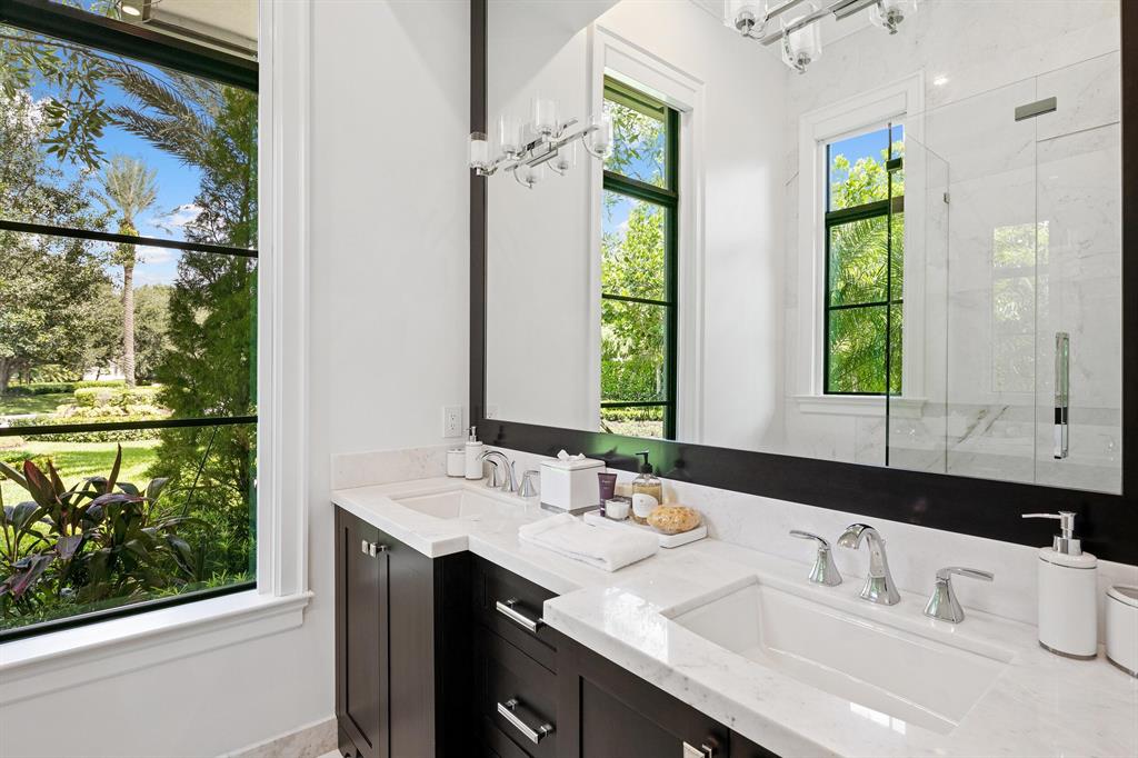 The worlds of chic contemporary design and resort-style comfort find common ground amid a prestigious gated community in Weston. Windmill Ranch Estates, constructed around the waterways that distinguish the landscape in this coveted part of west Broward County, provides an idyllic setting for this beautifully rendered seven-bedroom sanctuary by renowned architect Randall Stofft. Designed on a canvas bathed in brilliant, invigorating whites--like the custom cabinetry in the chef's kitchen and master bathroom (one of eight full baths to go with three half-baths), or the Turkish Carrara marble flooring in the dining area and formal living room--and complemented by rustic earth tones, the layout carries a thread of clean sophistication throughout its two floors.