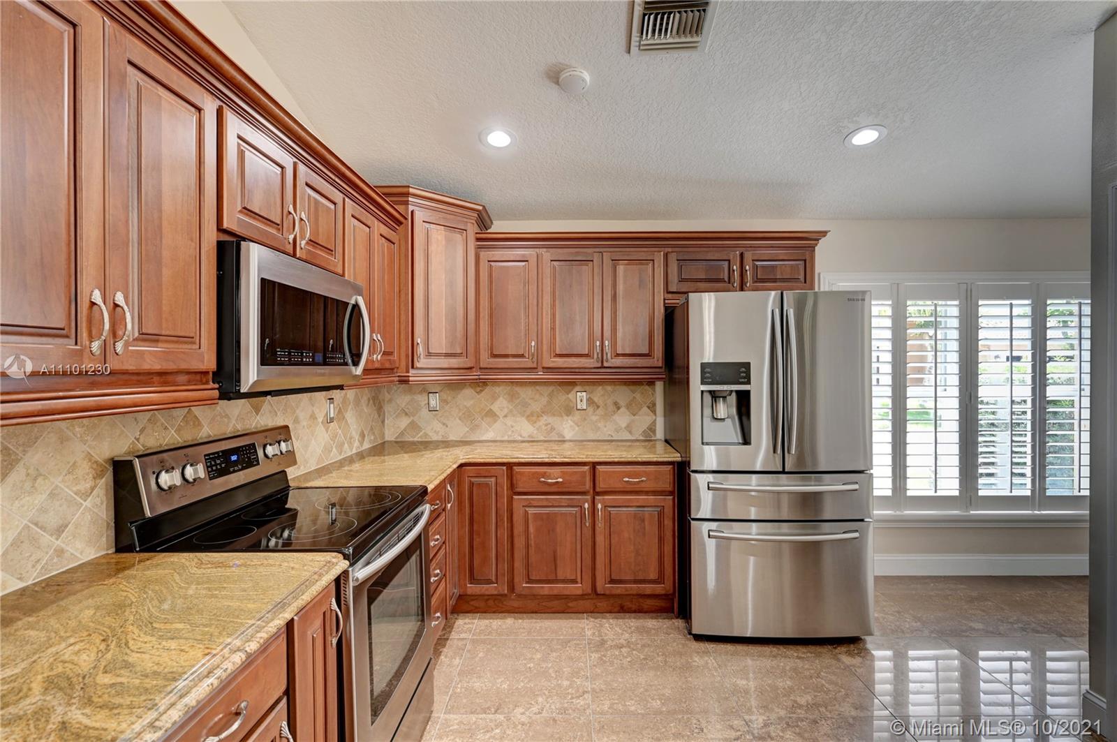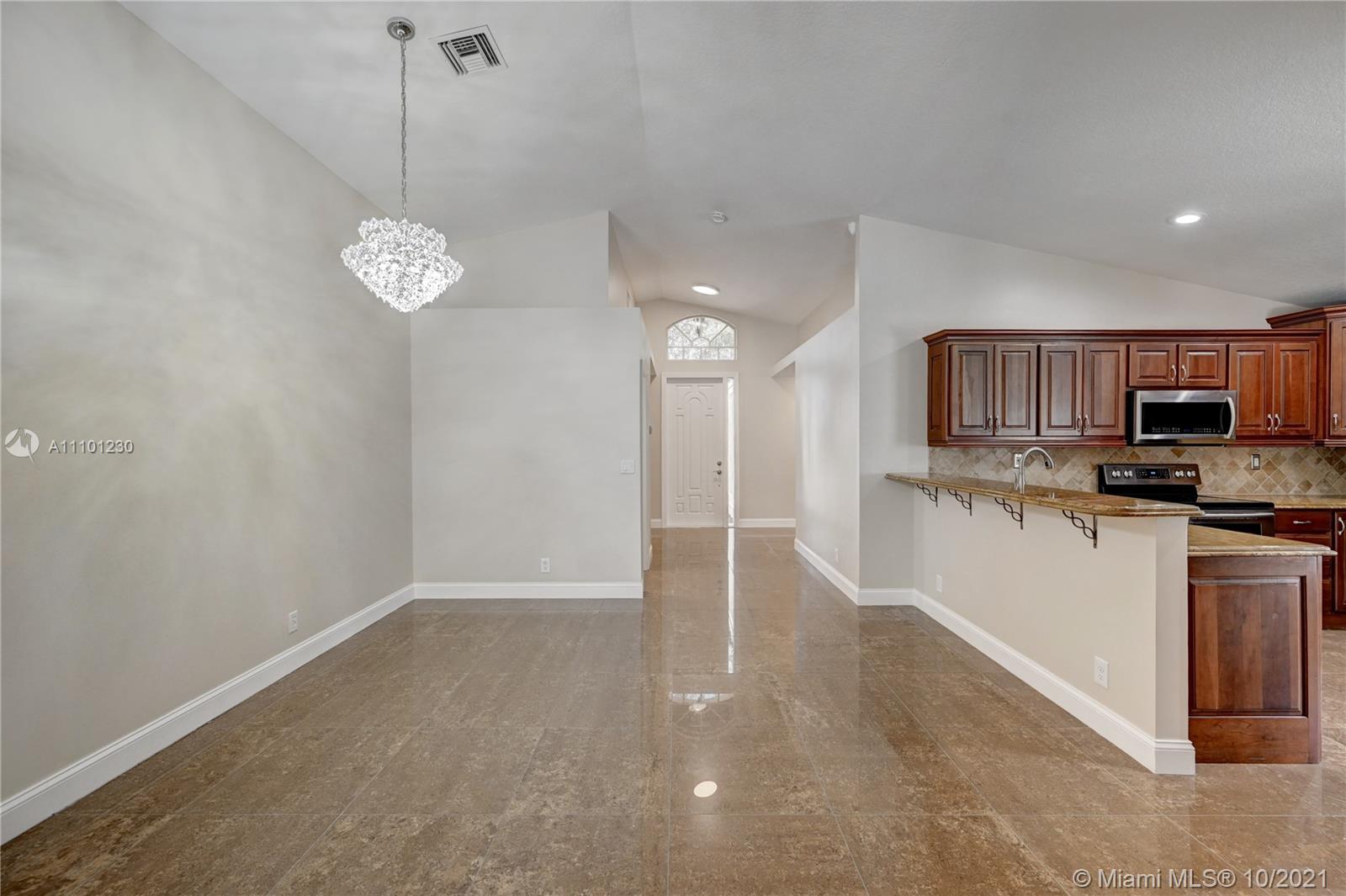 This 3 bedroom 2 bathroom home in the desired gated community of Sanctuary in Kensington is pristine and impeccable! A must see! This home features: Stunning vaulted ceilings, remodeled kitchen with real wood cabinets & self closing drawers, custom granite countertops with natural stone back splash, convenient separate serving area & matching Samsung stainless steel appliances, beautiful 24"x24" porcelain floors, wood plantation shutters throughout, remodeled bathrooms with real wood vanities & granite countertops, master with roman tub & walk in showers with frameless glass, updated LED lighting, Rheem HVAC system with germicidal irradiation lights. Outside you will find an oversized crystal blue pool & spa, fenced in & beautifully landscaped, covered patio deck perfect for entertaining.
