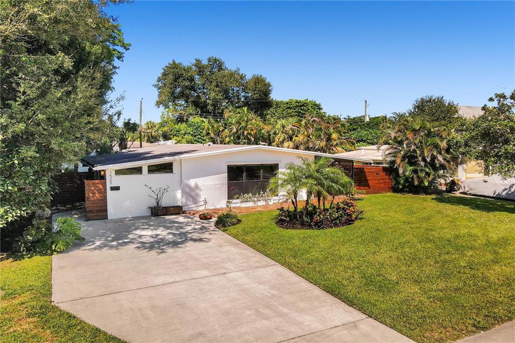 Mid Century Home with Modern Updates throughout. Filled with Natural Light, 2 bedrooms 1 bath plus a flex space for home office or 3rd bedroom w/a large storage area. Custom Blinds, French Doors, Vaulted Ceilings Custom Accent wall in the Living Room. Screened Porch overlooking large yard w/ room for a pool & expansion. Separate Utility/ Laundry Room. New Modern 6ft Privacy Fencing,2018 Electric Panels, 2016 Roof. Open Kitchen w/ Counter Seating & a Pantry. Updated fixtures & Lighting throughout. Nest Thermostat, full alarm system & outdoor security lighting. Shady Banks offers 2 parks with Volleyball, Tennis Courts Walking Paths and a Riverfront Preserve to Paddle Board/Kayak. Surrounded by the New River, with one way in/out this is the hidden gem neighborhood in Ft Lauderdale. A MUST SEE