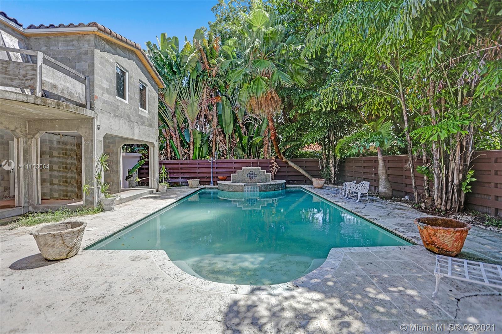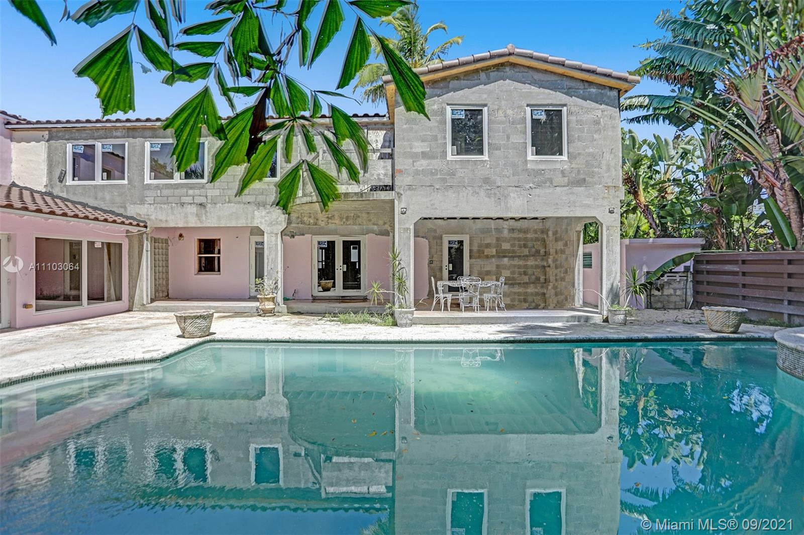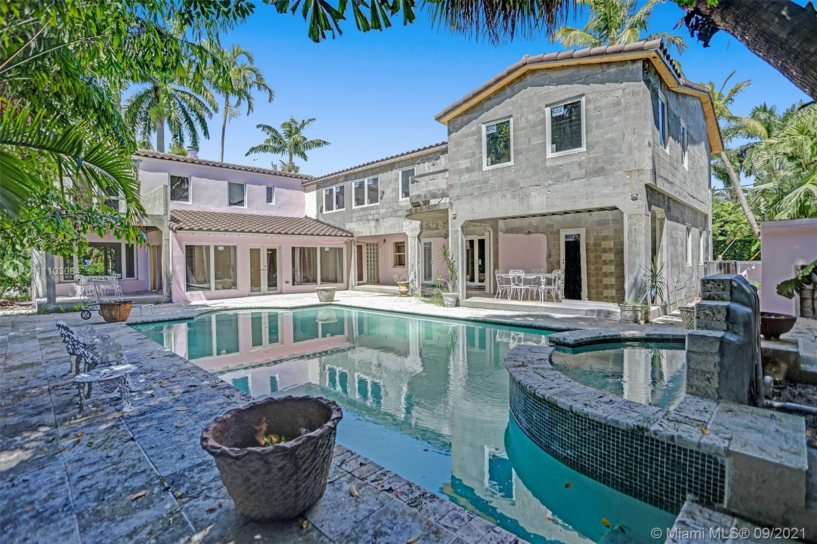 Located on the corner of prestigious Alton RD, this 2-story, 6,093 SF, 5 BD, 5.5 BA historic “Med-Deco” style (fusion of Art Deco/Mediterranean) home built in 1936 by pioneer architect Martin Luther Hampton is perfectly poised for a growing, entertaining loving family with dreams of living in this highly sought-after Miami Beach location. The unfinished home stands stately on a corner acre lot with two grand entrances and is replete with timeless elements of the era in which it was built, like dramatic archways, Terrazzo floors, high, stepped ceilings and glamorous staircase. Lush flora, covered terrace, romantic pool and high fencing forge a private, backyard wind-up/down and entertaining zone. Finish the expansion and your dreams of living in a beautiful Miami Beach home will come true.