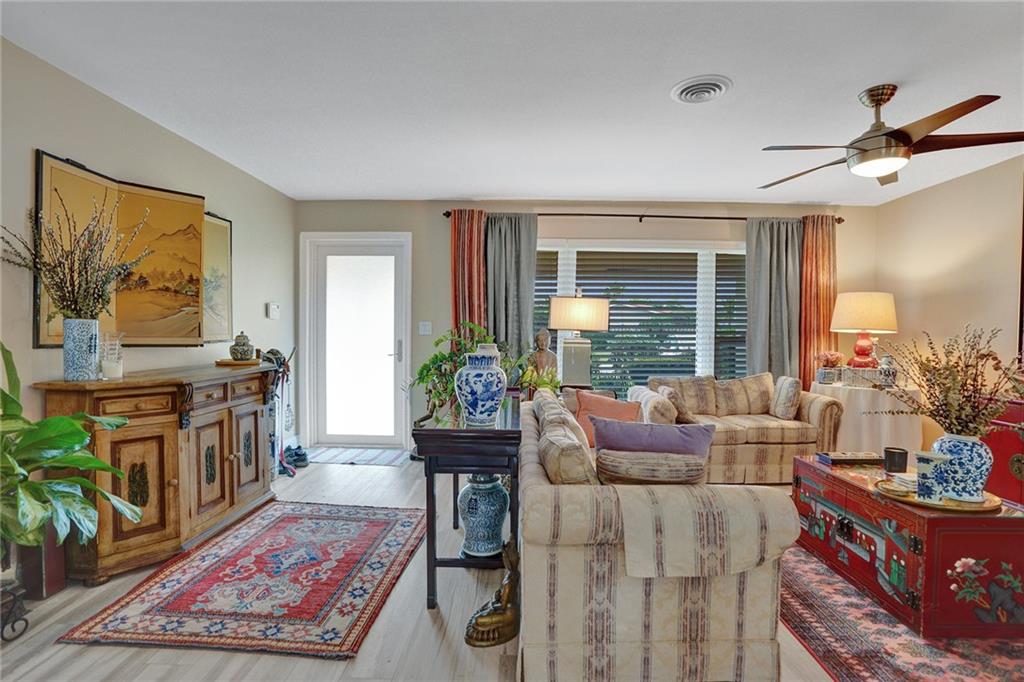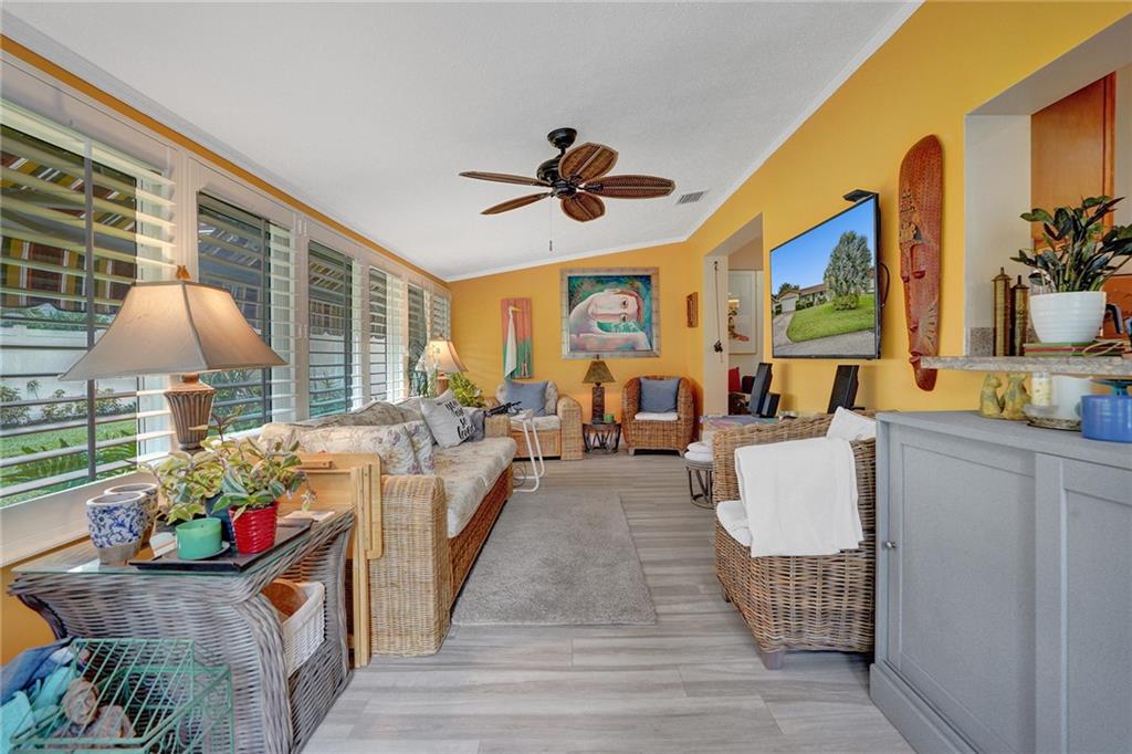 Back on the Market. Spacious Open Floor plan 2 bedroom & 2 bathroom home. This property sits on a perfect quant street. There are many features with a Bonus oversized Florida Room & well oversized laundry facility that is used as an office. All impact windows added in 2018 and New roof in 2012. Sharp Plantation Shutters on all windows added in 2018. Open chefs kitchen offers solid wood cabinets with granite counter tops and a marble snack bar. Refrigerator and dishwasher also 2018! The bathrooms were new in 2018. A huge feature is the oversized 2 car garage with storage. Lastly but not the end to this property is the Fully fenced backyard perfect for a custom pool & pets.