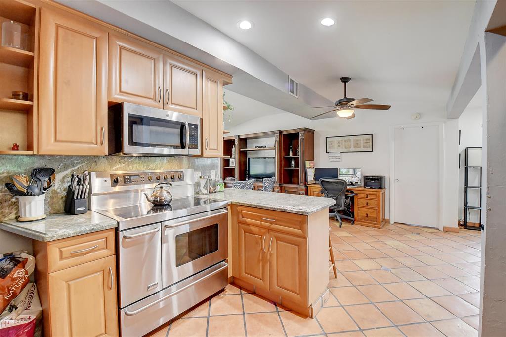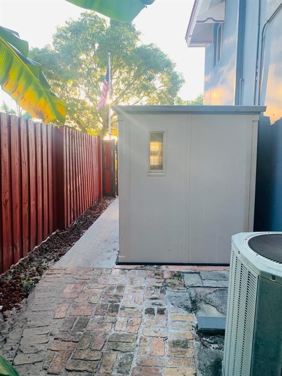 Beautiful 3/2 home with no HOA fee centrally located on tranquil East Boca street! The modern 3/2 Mediterranean style property offers a huge front yard with a roofed porch and a private backyard patio with a large pool and hot tub. There are 2 permit approved sheds in the backyard. The house brings in tons of natural light and features a Spanish tile roof, IMPACT windows and doors plus new stainless steel appliances. Custom Chicago brick is installed throughout the property including the driveway and pool area. The home has an extra wide 1-car garage (previously a 2-car but storage cabinets have since been installed) and a large 4-car driveway. There is space for a boat to the left which is fenced off. Only minutes away from A-rated schools, Mizner Park, FAU, shopping, and Boca beach