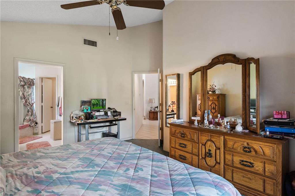 Rarely available, corner lot, one story home with peaceful lake views in the desired gate community of Bermuda Springs. This 3 bedroom, 2 bathroom home features tile in the common areas, volume ceilings, split floor plan, and stainless steel appliances. The master bedroom is generous in size with a private entrance to the backyard, spacious walk in closet and large master bathroom with his/her sinks. Community pool and playground is in walking distance. Plenty of landscaping gives the backyard just the right amount of privacy. Roof was replaced in 2012 and AC was replaced in 2017. Low HOA of $97 a month.