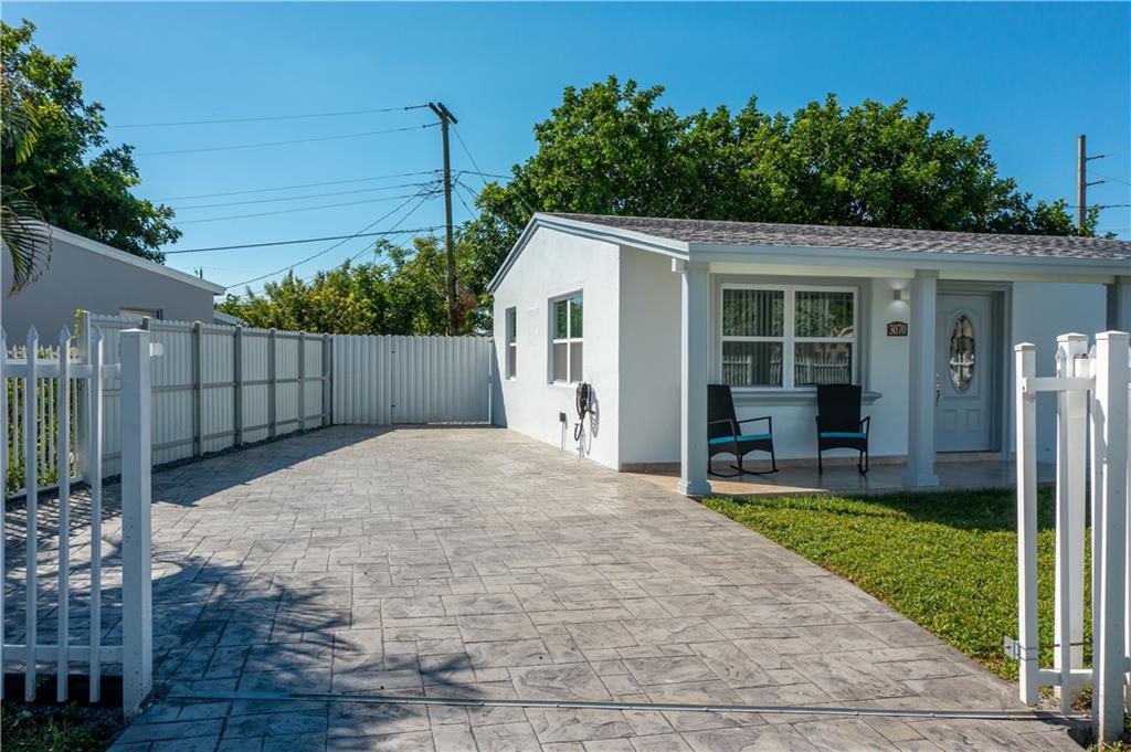 Completely renovated, open floor plan, 1 story ranch style home. Beautiful kitchen boasts white cabinets, glass backsplash and quartz counters. SS appliances. Modern and contemporary styling throughout. Decorator accents. Large, fenced yard. Electric powered gate. Impact windows! New AC (2020), New Tankless HWH (2019). New Roof (2019). Air conditioned Washer/Dryer area. Finished driveway and sidewalk entry. Home is "bring your toothbrush" ready!