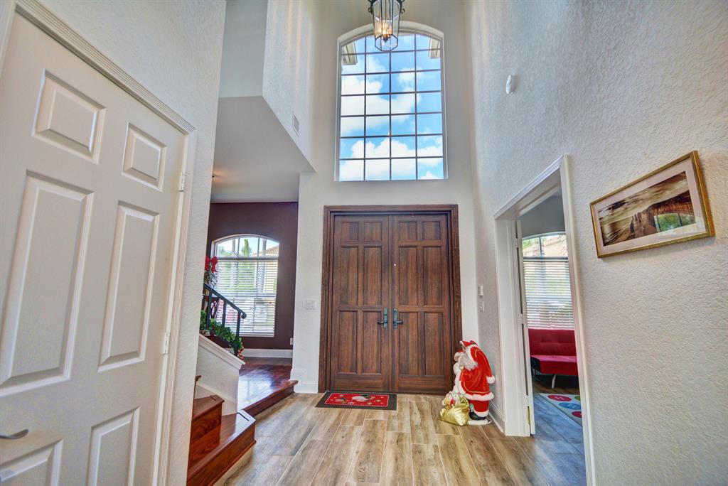 WOW! Volume ceilings & plenty of light fill this remodeled 2-story of 4 bedrooms & 4 baths featuring volume ceilings with crown moldings; new front double doors & impact glass windows & doors; wood-grain porcelain tile on the 1st floor & cherry wood laminate on the stairs & 2nd floor;built-in bar area; updated kitchen with Brazilian light wood cabinetry,granite counters & backsplash & stainless steel appliances;decorative Living Room fireplace;upgraded laundry room cabinets & counters;Family Room entertainment center;mirrored Dining Room wall;remodeled Master & secondary baths; wood blinds;custom closet design;freshly painted interior walls;central vacuum;newer dishwasher, water heater,washer & garage springs & a lovely open totally private patio offering a pool & spa.Roof replaced 2011.