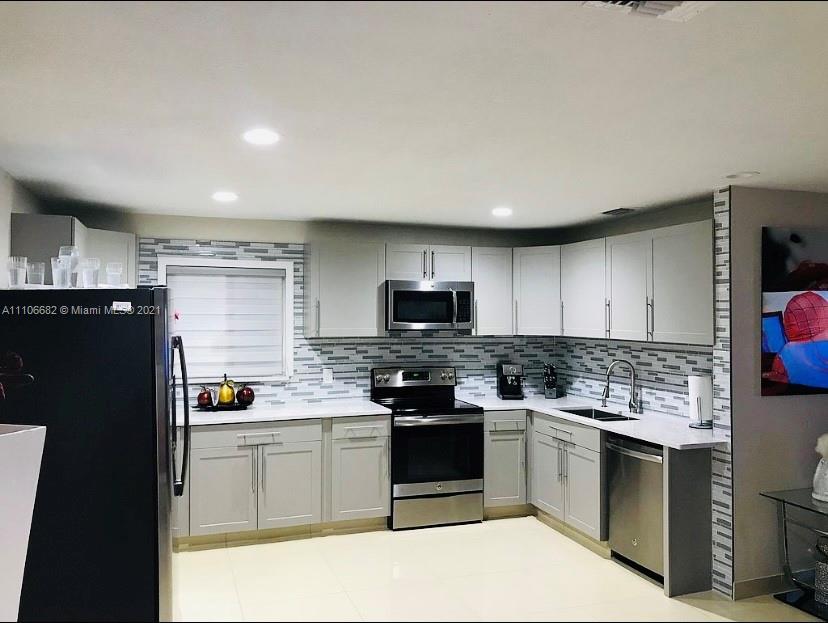 Single Family home 3/2, located in a convenient 10,800 sf corner lot/land, the property has 2020 roof, 2020 A/C, All impact doors and windows, 2020 electric water heater, fully remodeled kitchen ( granite counter top, wood cabinets and tile on back plash ), SS appliances, 1 bath fully remodeled porcelain tile floor in the entire property, back yard with tile floor, aluminium isolated cover patio and enough room for a pool. The property is rented for $1500 monthly until August 01 2022 ( estimate monthly rent in this area $1600 - $1800). excellent tenants. Property has City water and sewer. Great for first home buyers or for investors. Master room has an independent entrance door. Property could be rented 2 bedroom 1 bathroom and 1 bedroom 1 bathroom.