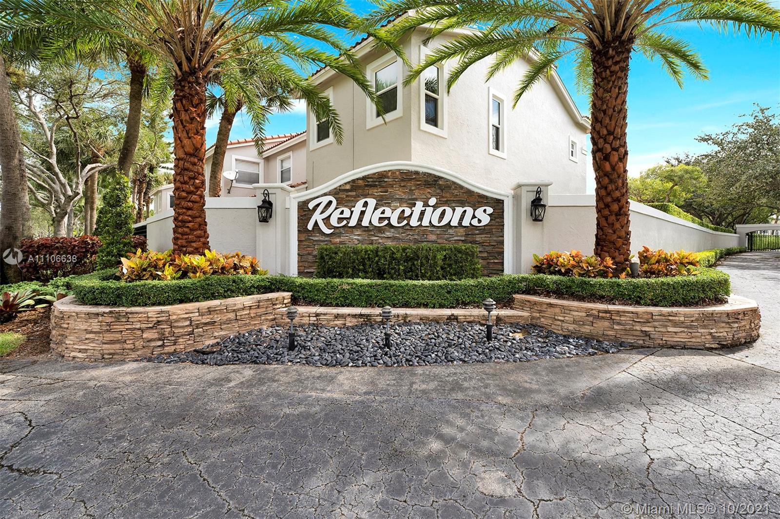 Beautiful townhouse completed remodel with screened-in front porch and bonus screened back patio, surrounded by lush landscaping for complete privacy. This 3 bedroom + loft, 2 and a half bathrooms home features a large kitchen with new custom wood cabinets, unique leathered finish granite countertops & copper accents. Brand new roof and water heater, hurricane accordion shutters (all just replaced in 2021), A/C (2018), brand new appliances, and newer gutters & downspouts. Master bedroom on the first floor. Homeowners have exclusive access to both community pools as well as resort-style amenities. Located in the gated Reflections community within Mission Bay at Boca Raton. Mission bay offers a waterfront resort-style pool, fitness center, tennis courts, and more.