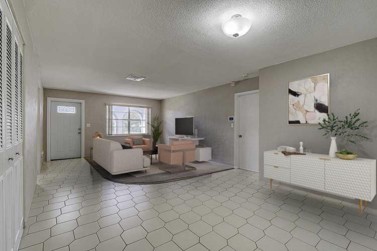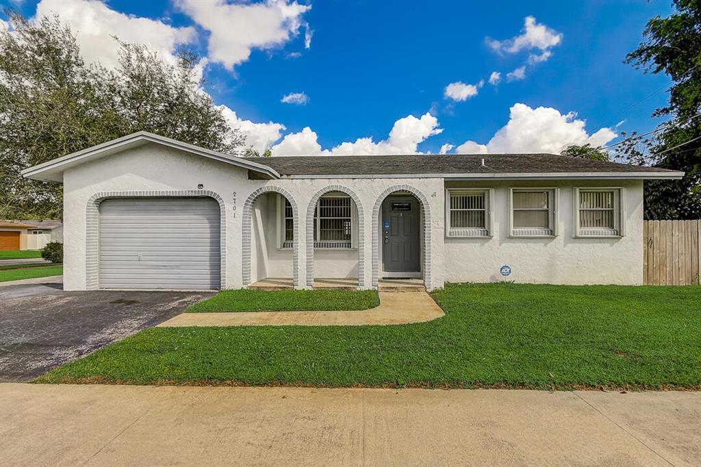 This Hollywood one-story corner home offers granite countertops, and a one-car garage.