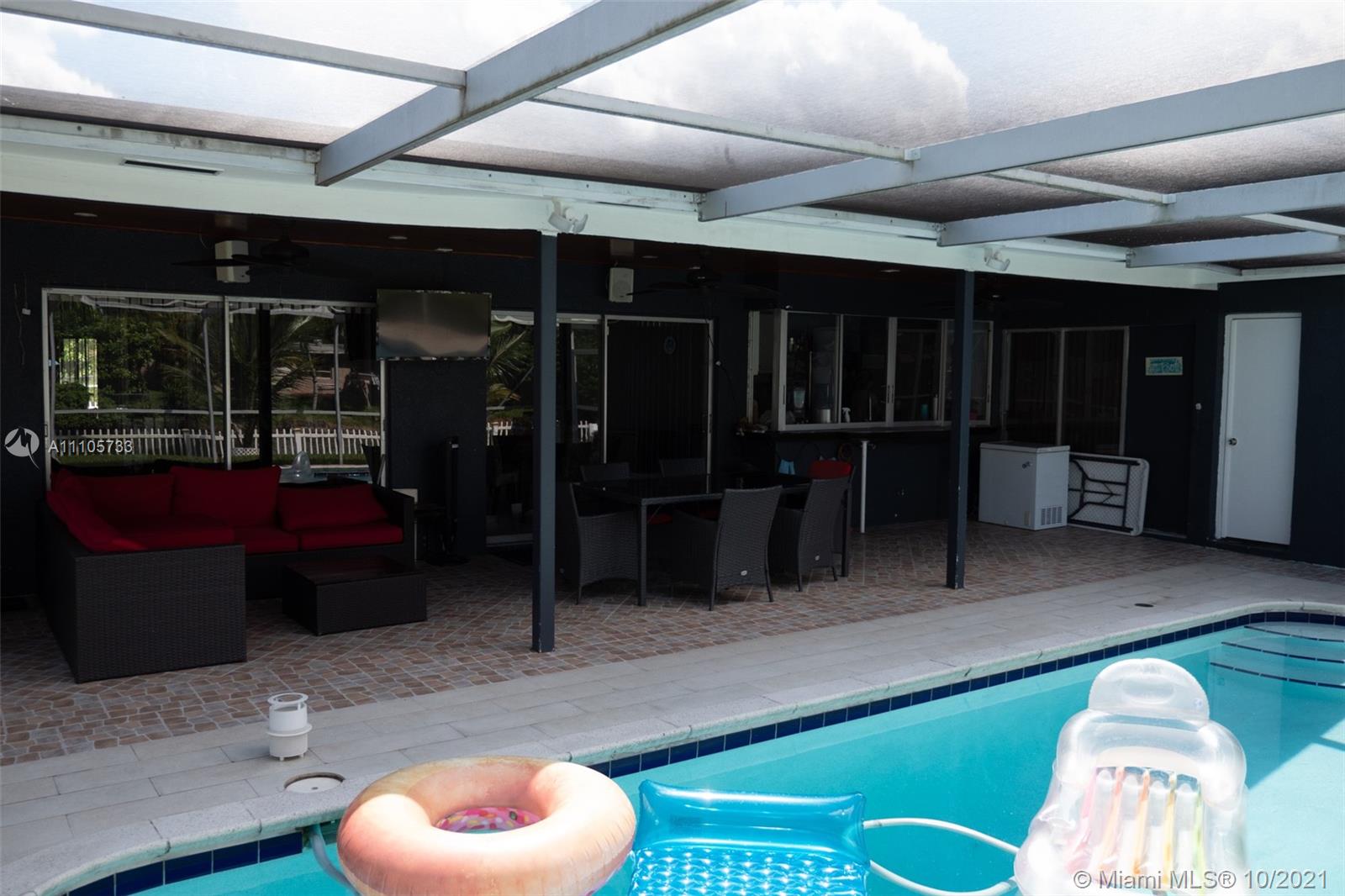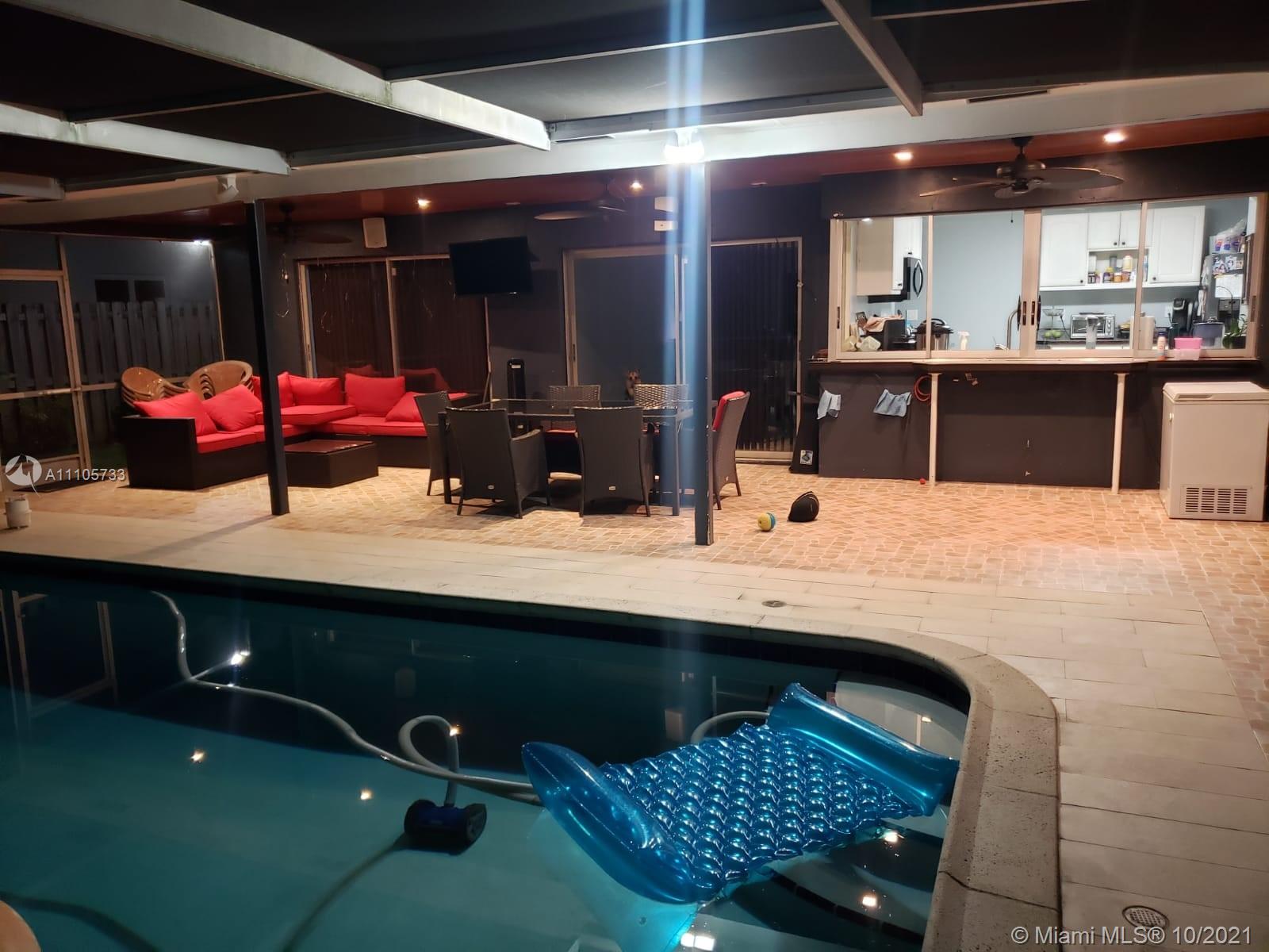 Gorgeous waterfront single-family home, featuring a salt water pool (equipment included) and outdoor entertainment area. Newly remodeled bathrooms with marble flooring in the living room and kitchen area with stunning feature wall in the family room. Kitchen features a large gas stove and sliding glass window above the sink; perfect for entertaining guests. The roof is only two years old and the central air conditioning is just 5 years old. Feel safe in this move-in-ready home with a fenced-in backyard and security cameras located throughout. showings Monday to Friday after 5:30 pm all day Saturday and Sunday.