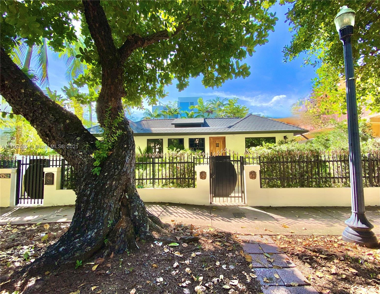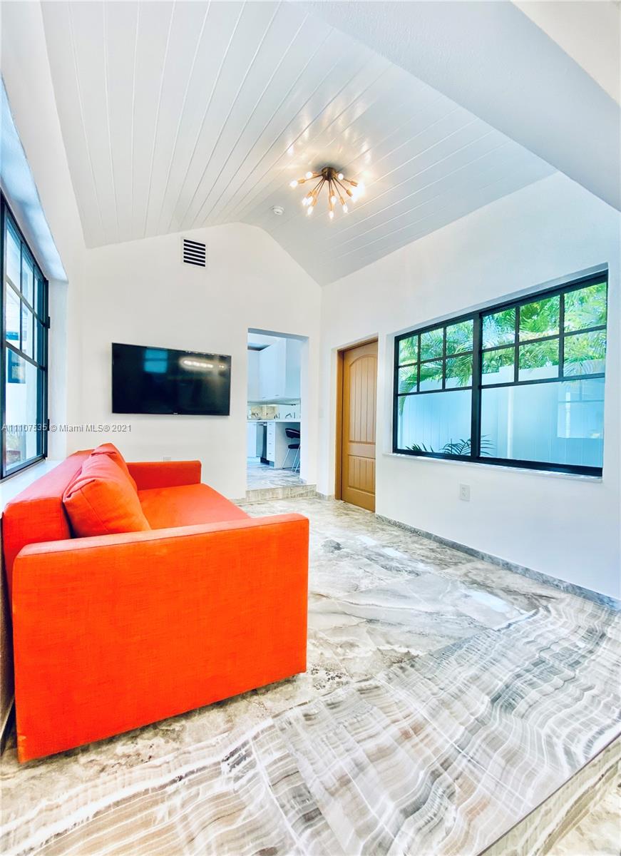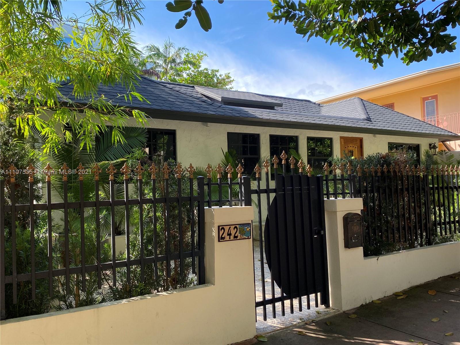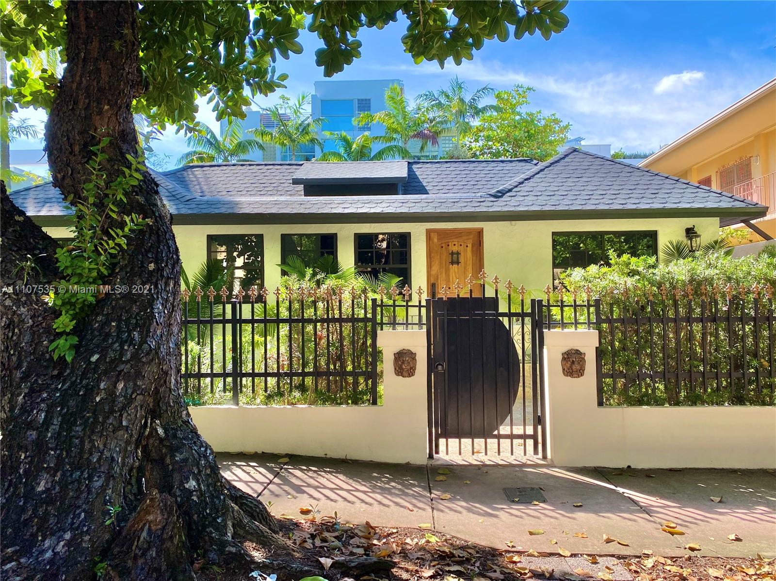 Single Family Home on quiet enchanting tree lined Meridian avenue, South of Fifth. Very rare opportunity to own a beautiful gut renovated 3 Bed 3 Bath + office and an extra fully independent studio guest house extension all nested on a large 4200SF lot. Main house is a gorgeous 3 bed 3 bath + office with high vaulted ceilings. Income producing 355SF guest house. Brand new roof, new high impact windows & doors, decorative fireplace, sauna & open custom kitchen. Lushly landscaped back courtyard offers full outdoor kitchen with grill, refrigerator & sink. Outdoor shower, storage shed, connection-ready for 22’ jacuzzi & pool installation without need for permits. Turn-Key as is, or build a 4-story mansion. Appraised at $3.2M