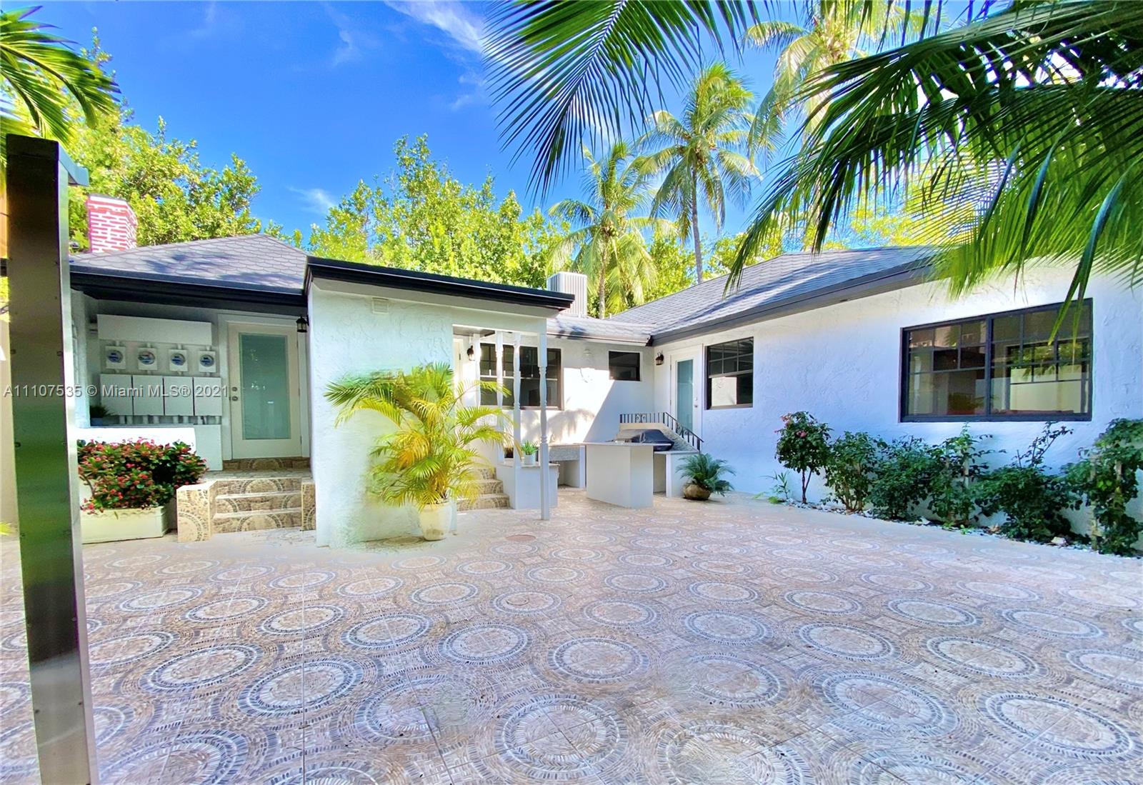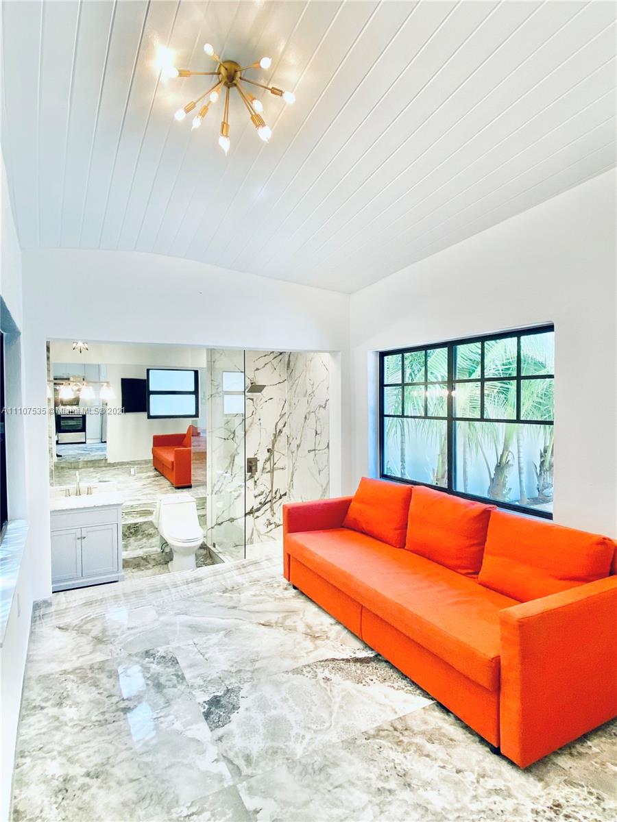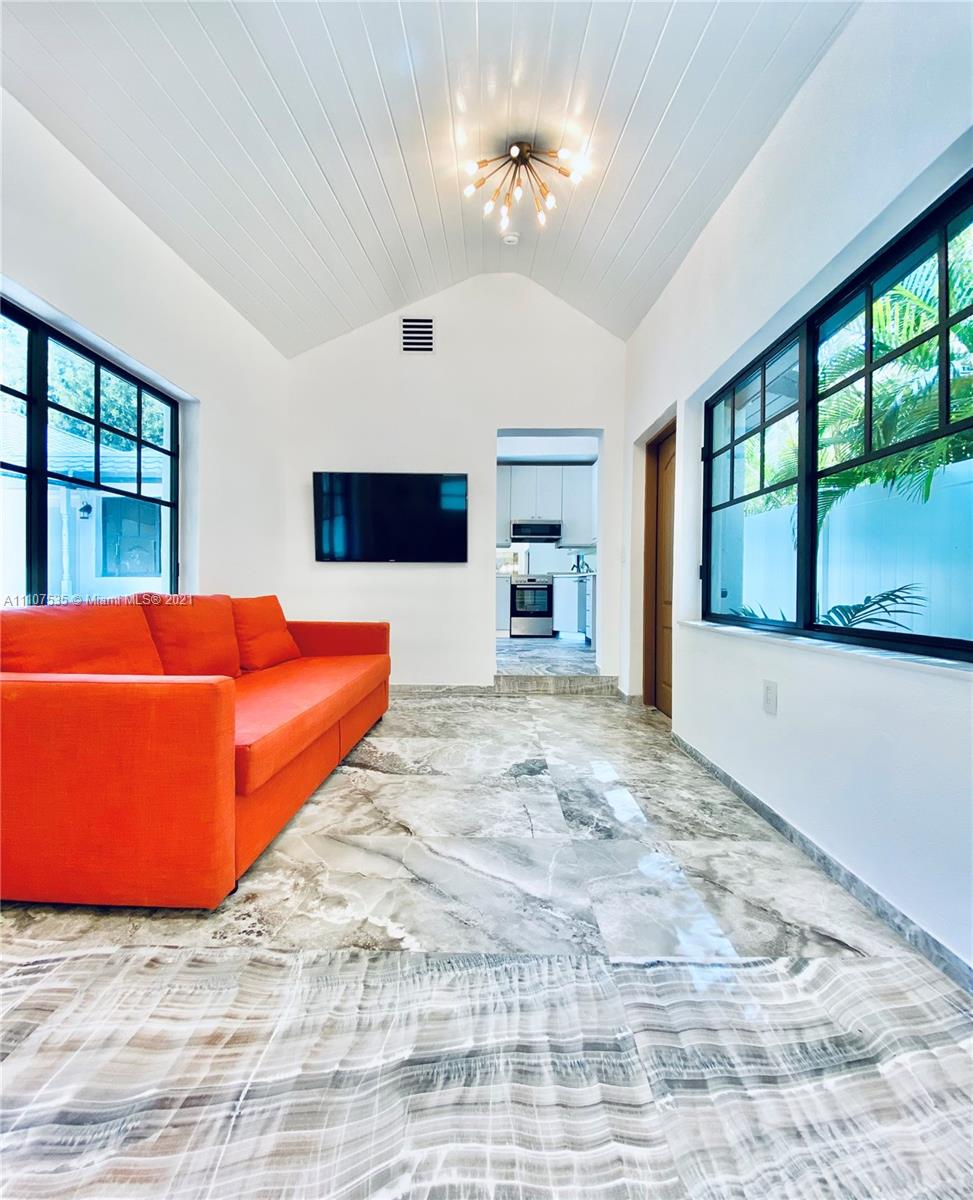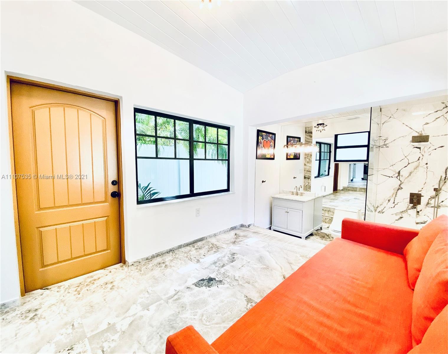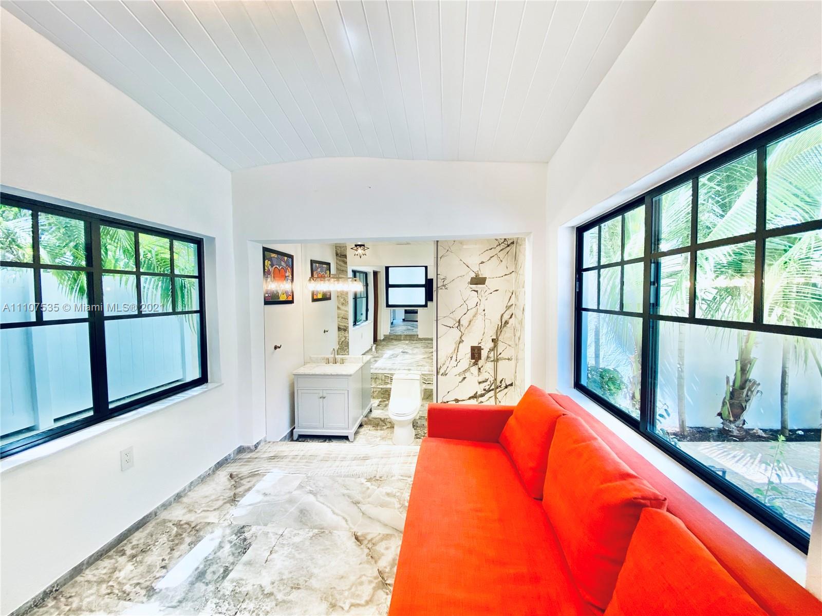 Single Family Home on quiet enchanting tree lined Meridian avenue, South of Fifth. Very rare opportunity to own a beautiful gut renovated 3 Bed 3 Bath + office and an extra fully independent studio guest house extension all nested on a large 4200SF lot. Main house is a gorgeous 3 bed 3 bath + office with high vaulted ceilings. Income producing 355SF guest house. Brand new roof, new high impact windows & doors, decorative fireplace, sauna & open custom kitchen. Lushly landscaped back courtyard offers full outdoor kitchen with grill, refrigerator & sink. Outdoor shower, storage shed, connection-ready for 22’ jacuzzi & pool installation without need for permits. Turn-Key as is, or build a 4-story mansion. Appraised at $3.2M