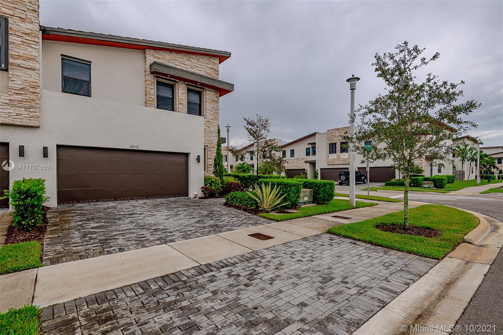 Beautiful and Modern CORNER lot townhome in prestigious community in Doral. Features include, stainless steel appliances, ice maker refrigerator, dishwasher, disposal, large pantry, storage room, carpet only in bedrooms, the rest of the space is tiled, 2 car garage, Impact windows/doors, plus fenced in the back yard. Luxury Clubhouse includes a resort-like pool with a child play area and a fitness room with showers, sauna truly the biggest Clubhouse in the area. The unit is close to shopping centers, restaurants with easy access to expressways.
