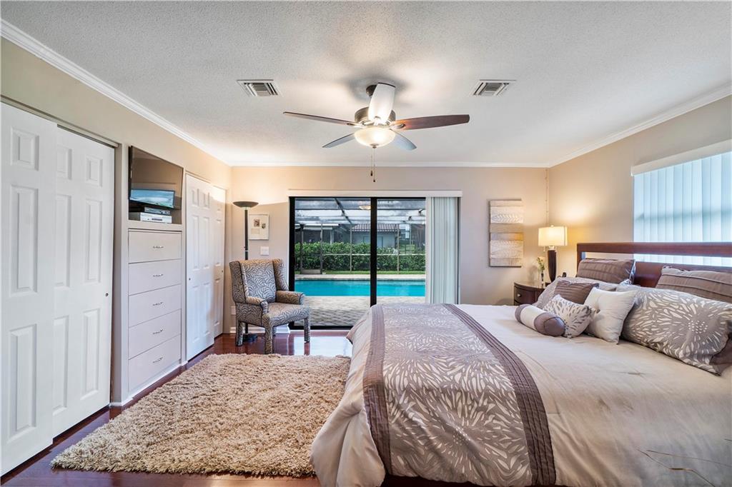 LOCATION, LOCATION, LOCATION! WOW A GEM! 3-2 pool home on water! This immaculate, light and bright, exquisite, updated home has real hard wood floors in bedrooms, hurricane impact windows, accordions on patio sliders, den can be converted into 4th bedroom, Mahogany etched den doors, remodeled over-sized kitchen with granite counters and LED high hats, abundance of kitchen cabinets with pull outs, freshly painted interior 2021, painted exterior 2020, custom closets in all bedrooms, total master bedroom and bath upgraded, heated pool overlooking waterway, extended paver patio, sprinkler system, 2 car garage, side walks, low HOA! Too many upgrades to mention!!! This home will not last, bring your fussiest buyers, they will not be disappointed! Move in condition!