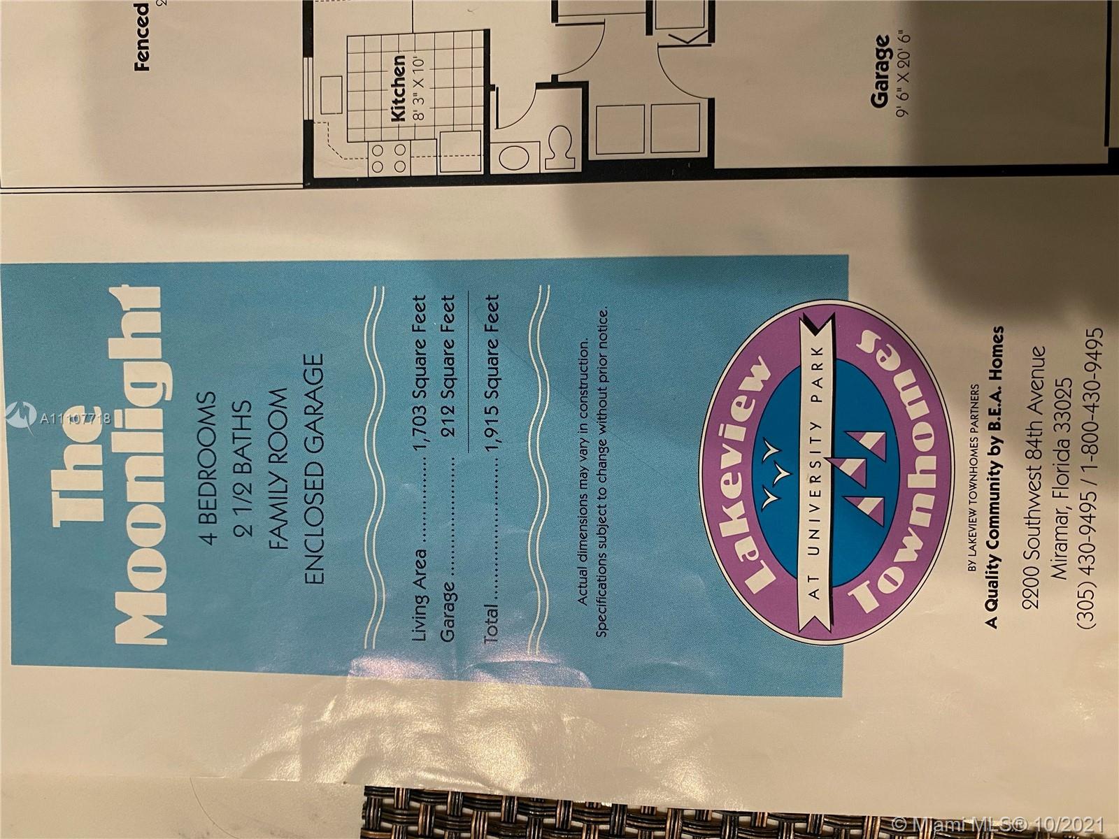 This Amazing Townhouse is a large Corner Unit .located in a very nice gated community of Miramar Lakeview Townhouse. Large Master bedroom, Open Concept kitchen with Granite counter top , Gated back yard .Move in Ready. MUST SEE THIS WILL NOT LAST.. Must summit a PRE APPROVAL PER SELLER to set up showing. Agents PLEASE TEXT LISTING AGENT . Showings Start SAT 10/9/21 @ 12-4PM Appointment only MUST BE A 60 DAY CLOSING