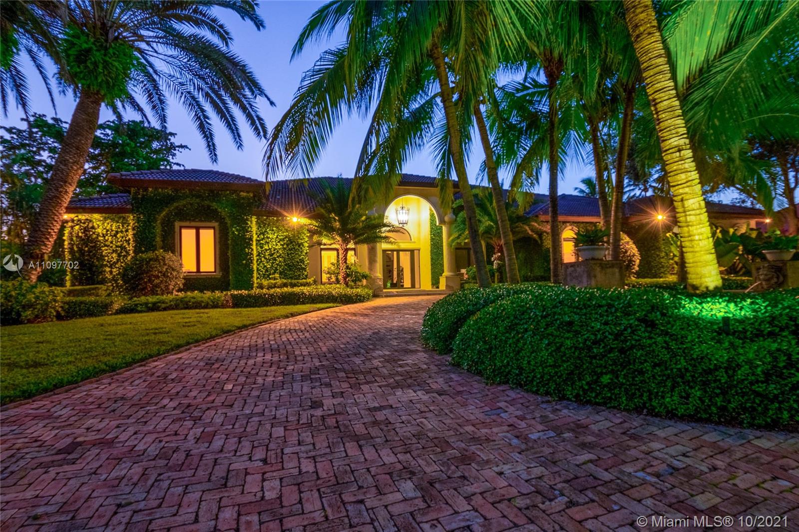 Prominent gated residence on palm-lined street in north Pinecrest. One-story estate features soaring ceilings & great distribution of space. Manicured backyard is a SoFL oasis with luxe pool/spa area, summer kitchen, koi pond, grassy area for playing & mature privacy trees. Dine-in chef’s kitchen for entertaining opens to breakfast nook & large family room. Enjoy covered al fresco dining and your summer kitchen. Elegant pool and decking invite you outside. Huge master w/sitting room. Top-line finishes and features include impact windows/doors, whole-house generator, new garage doors, new lighting system, new closets, repainted on the interior, new exterior cameras, new A/C units & new washer/dryer/dishwasher. Top-rated Pinecrest Elementary school district and easy access to shops & US-1.