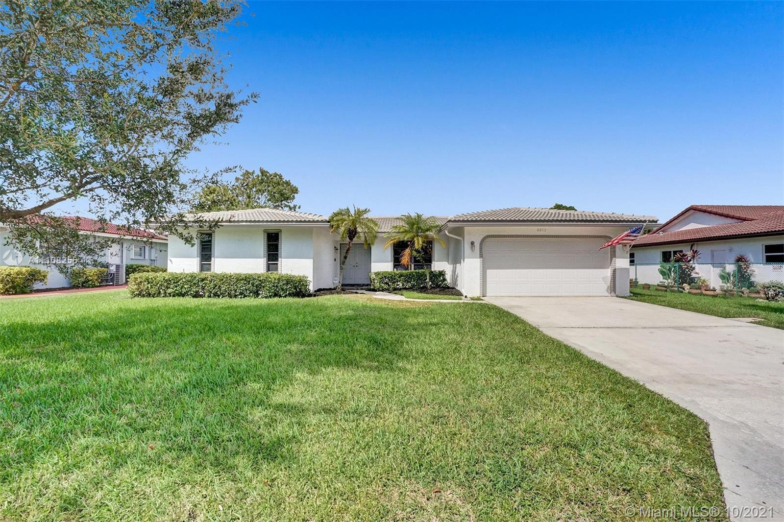 An amazing opportunity to own a 4-bedroom 2 bathroom **POOL HOME** located on the water in the heart of Coral Springs! No Homeowners Association! Pride in ownership shows in this immaculate home! **NEW ROOF 2020** NEW GARAGE DOOR 2020**NEW ELECTRICAL PANEL 2021**NEW HOT WATER HEATER 2021**NEW SALTWATER CELL FOR POOL 2021**NEW REFRIGERATOR 2021**! Bamboo hardware floors in Family Room! Remodeled eat in kitchen with granite and newer appliances! Remodeled bathrooms! Huge fenced in yard with a covered porch perfect for outdoor entertaining! Centrally located! This is a must see home!