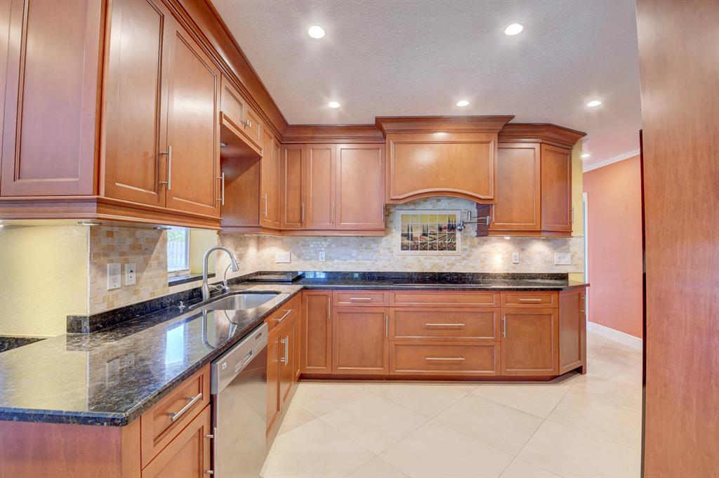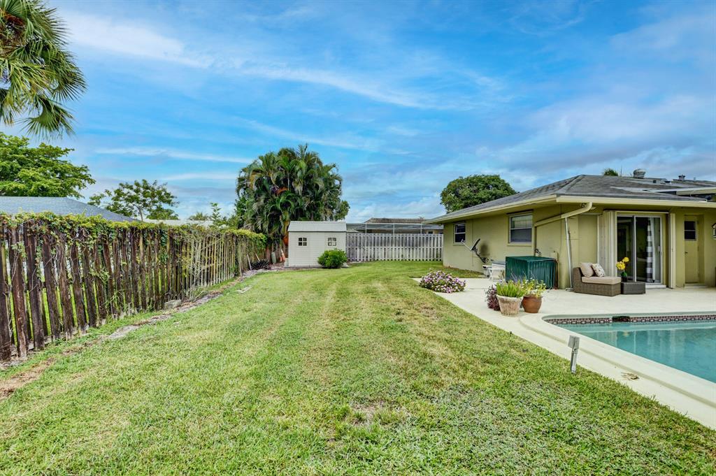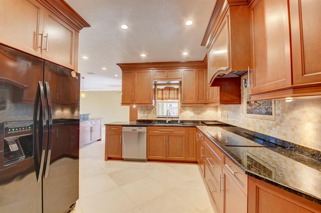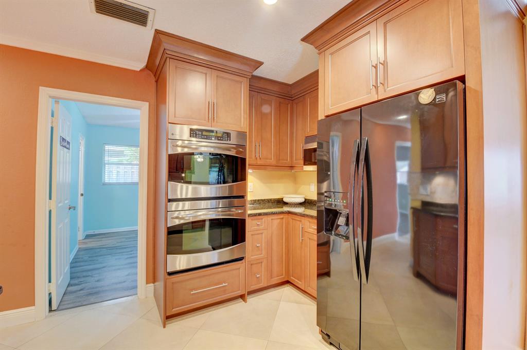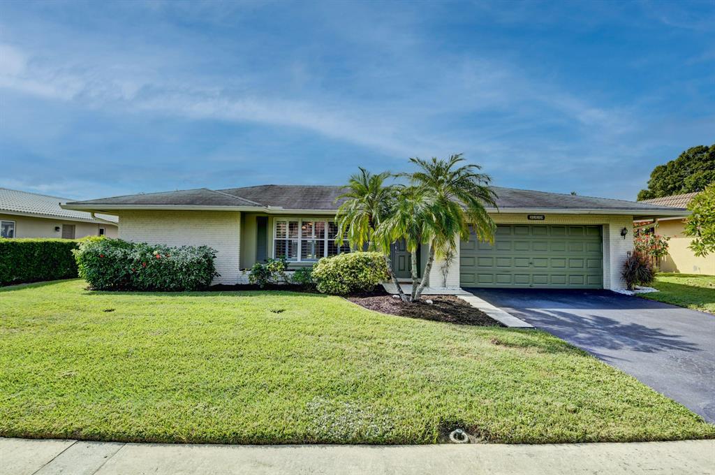 True 4-bedroom pool home with a 2-car garage in the popular community of Boca Raton Square. No HOA, zoned for A rated Addison Mizner (.9 miles), Boca Raton Middle (1.9 miles) and Boca Raton High Schools (2.4 miles) and just 10 minutes to the beach! The home has complete hurricane protection, is wired for a generator and has no overhead power lines! The spacious kitchen is open to the living/dining area and has plenty of storage including a pantry with pullout drawers, double wall ovens, wood cabinets, pot filler faucet, granite counters and an island with sink. The living areas have neutral porcelain tile floors and all bedrooms have wood-look vinyl plank floors. Plantation shutters decorate the windows in the living room and primary bedroom and French doors lead from the dining area to