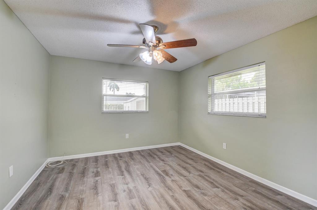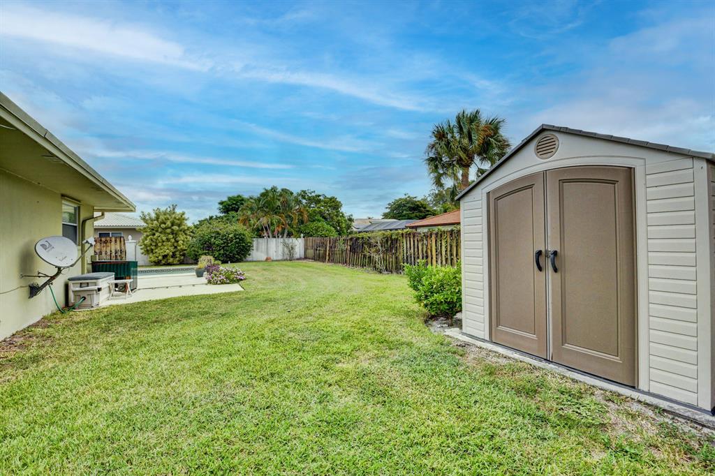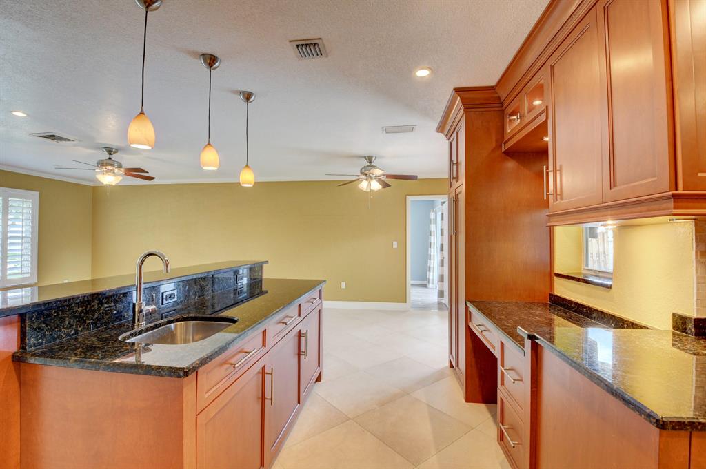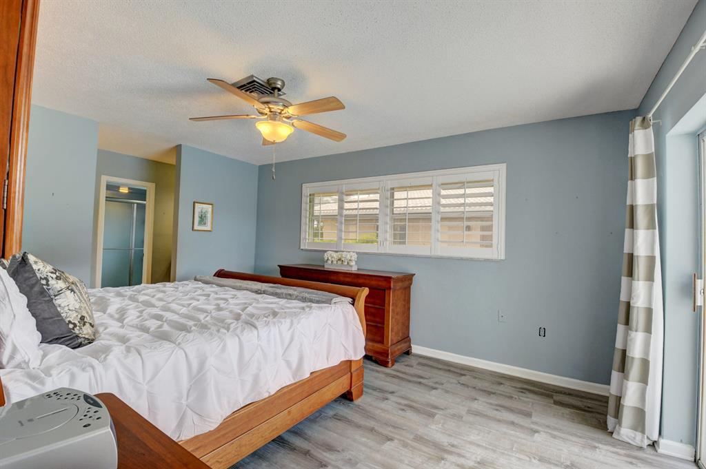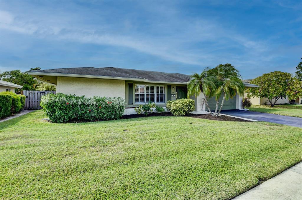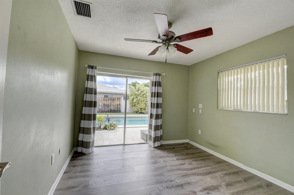 True 4-bedroom pool home with a 2-car garage in the popular community of Boca Raton Square. No HOA, zoned for A rated Addison Mizner (.9 miles), Boca Raton Middle (1.9 miles) and Boca Raton High Schools (2.4 miles) and just 10 minutes to the beach! The home has complete hurricane protection, is wired for a generator and has no overhead power lines! The spacious kitchen is open to the living/dining area and has plenty of storage including a pantry with pullout drawers, double wall ovens, wood cabinets, pot filler faucet, granite counters and an island with sink. The living areas have neutral porcelain tile floors and all bedrooms have wood-look vinyl plank floors. Plantation shutters decorate the windows in the living room and primary bedroom and French doors lead from the dining area to